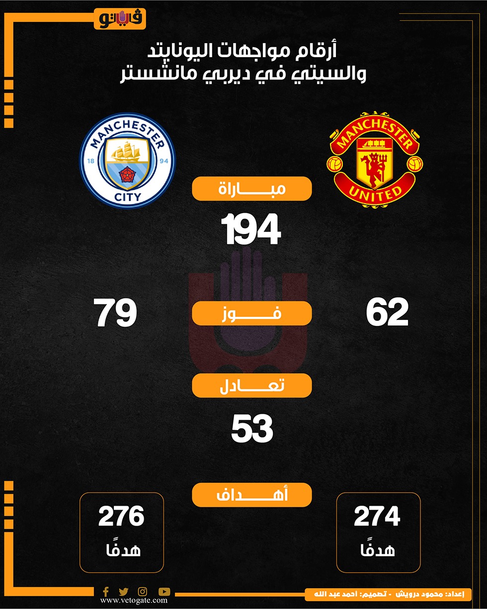 أرقام مواجهات اليونايتد والسيتي في ديربي مانشستر (إنفوجراف)