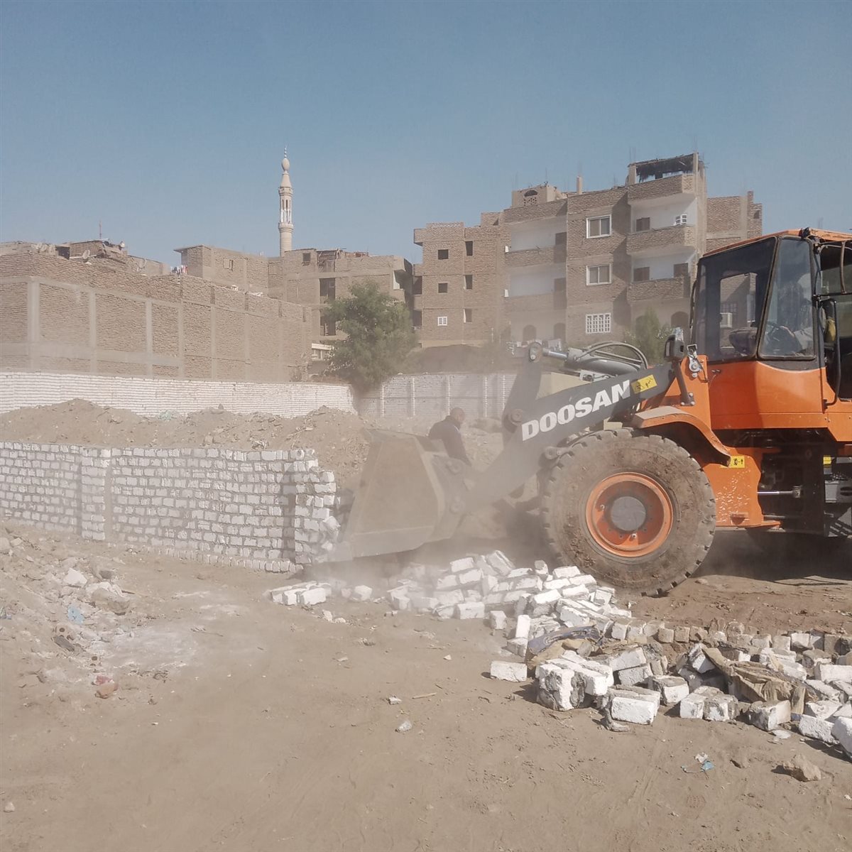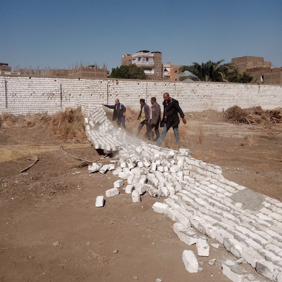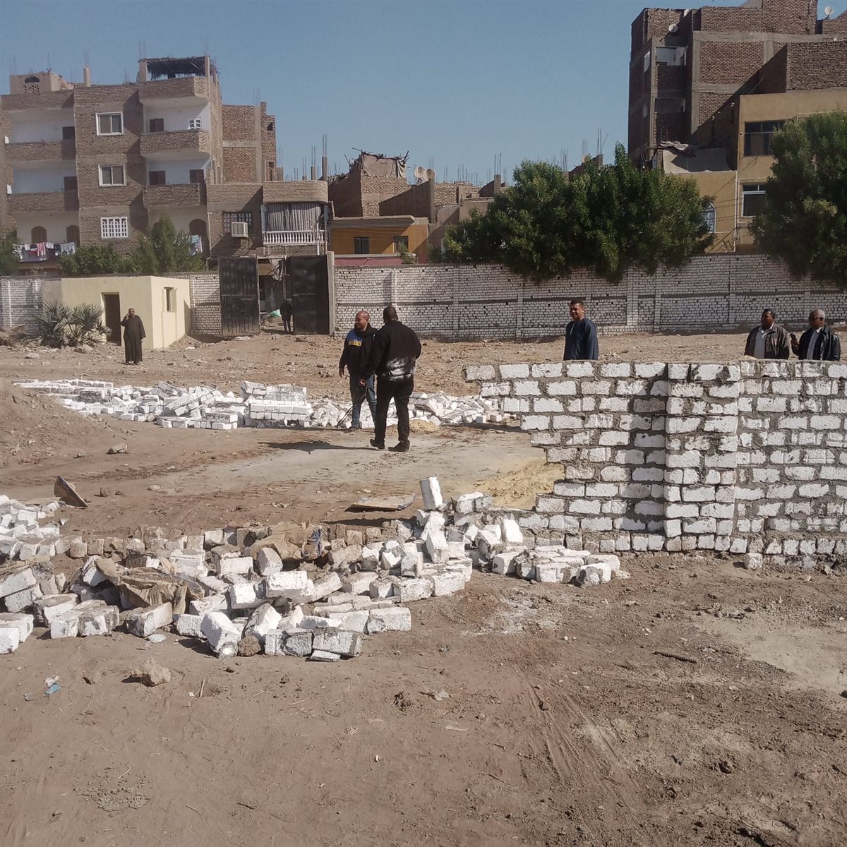 وأوضح رئيس مدينة الأقصر، إنه تم تنظيم حملة مكبرة بالتنسيق مع قسم شرطة الأقصر لتنفيذ إزالة لحالة تعد بالبناء المخالف بمنطقة حي شمال عبارة عن سور من الطوب الأحمر والمونة السوداء ومخلفات النخيل، على مساحة حوالى 200 م2، وعلى الفور تم هدم السور والإزالة حتى سطح الأرض، وتم مصادرة مواد البناء واتخاذ الإجراءات القانونية حيال المخالف.
