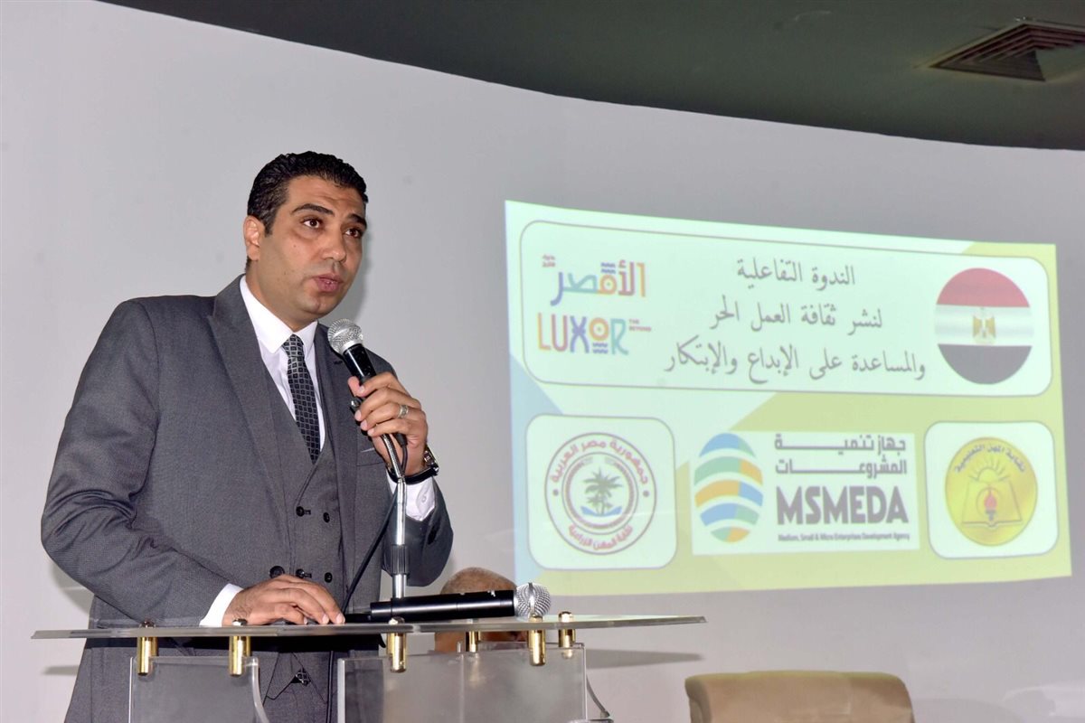 شهد نائب محافظ الأقصر الدكتور هشام أبو زيد، فعاليات الندوة التفاعلية لنشر ثقافة العمل الحر والمساعدة على الابداع والابتكار، التي عقدت بمقر مكتبة مصر العامة بالأقصر، ونظمها جهاز تنمية المشروعات المتوسطة والصغيرة والمتناهية الصغر، بالتنسيق مع نقابة المهن الزراعية ونقابة المهن التعليمية.