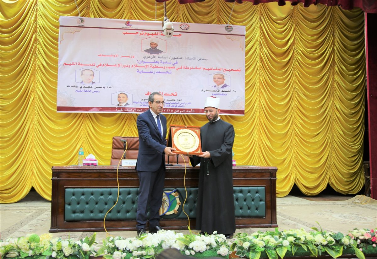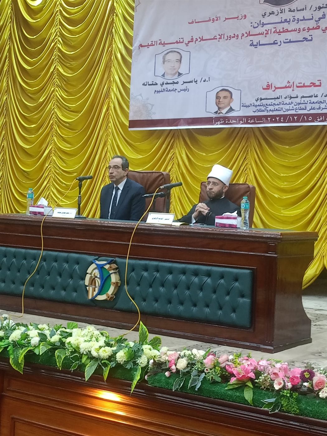 جاء ذلك خلال الندوة التى عقدها اليوم الأحد، وزير الأوقاف فى جامعة الفيوم، تحت عنوان "تصحيح المفاهيم المغلوطة فى ضوء وسطية الإسلام" وشهدها الدكتور ياسر مجدى حتاتة رئيس الجامعة والدكتور عاصم العيسوى نائب رئيس الجامعة وعمداء الكليات ووكلاء وزارة الأوقاف والأزهر وممثلون عن الأوقاف والأزهر والكنيسة فى الفيوم وطلاب الجامعة.