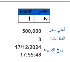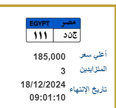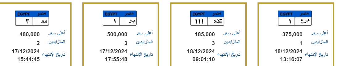 وجاء أبرز اللوحات المعدنية المميزة المطروحة: لوحة معدنية مميزة" م ر ع 1" بسعر 375 ألف جنيه، لوحة معدنية “ ج ن د 111” بسعر 185 ألف ويتنافس عليها 3 أشخاص، لوحة معدنية “ ب و1” بسعر 500 ألف جنيه، لوحة معدنية " هـ هـ 3" بسعر 480 ألف جنيه ويتنافس عليها شخصان.