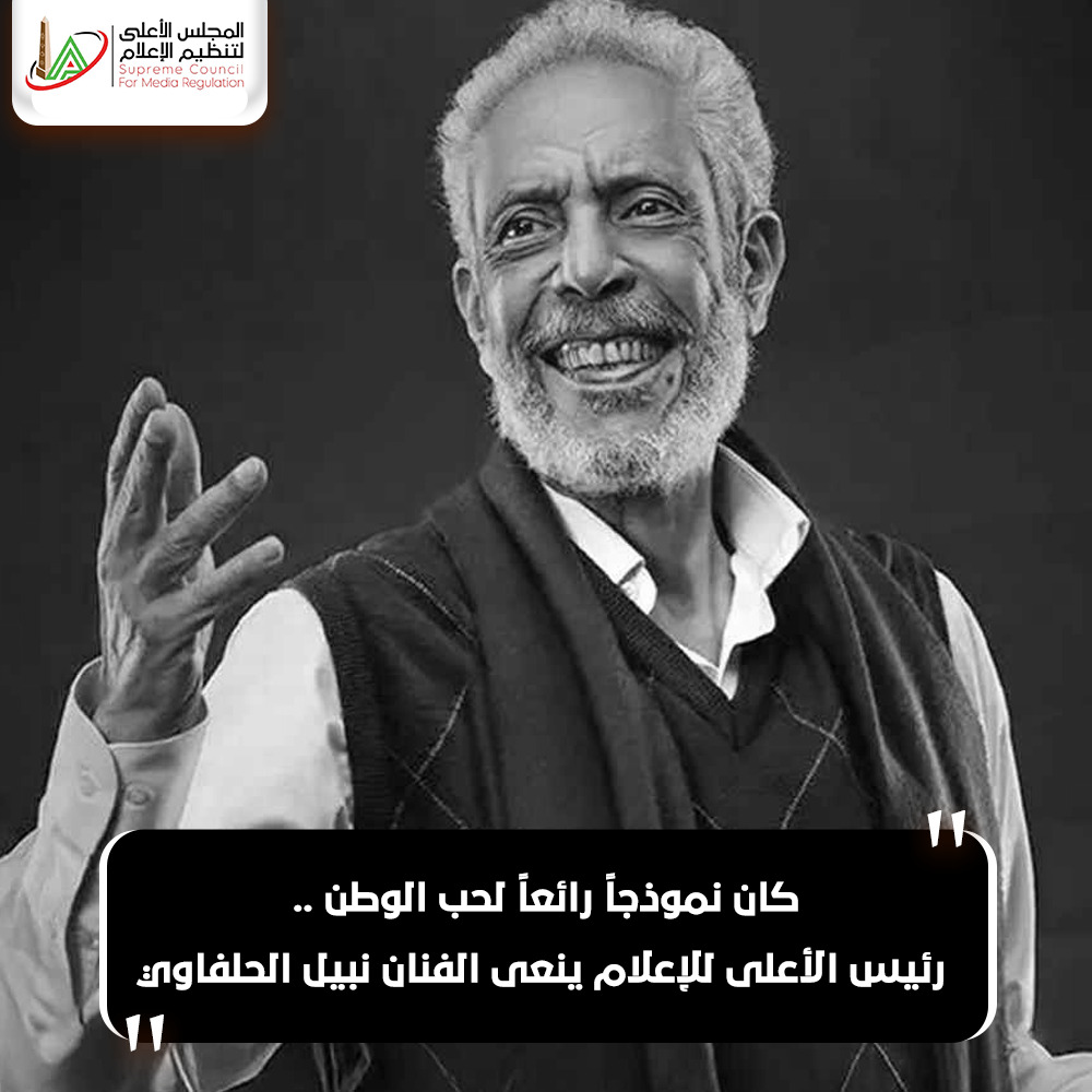 نعى المهندس خالد عبد العزيز رئيس المجلس الأعلى لتنظيم الإعلام ببالغ الحزن والأسى الفنان القدير نبيل الحلفاوي الذي وافته المنية وانتقل إلى جوار ربه.