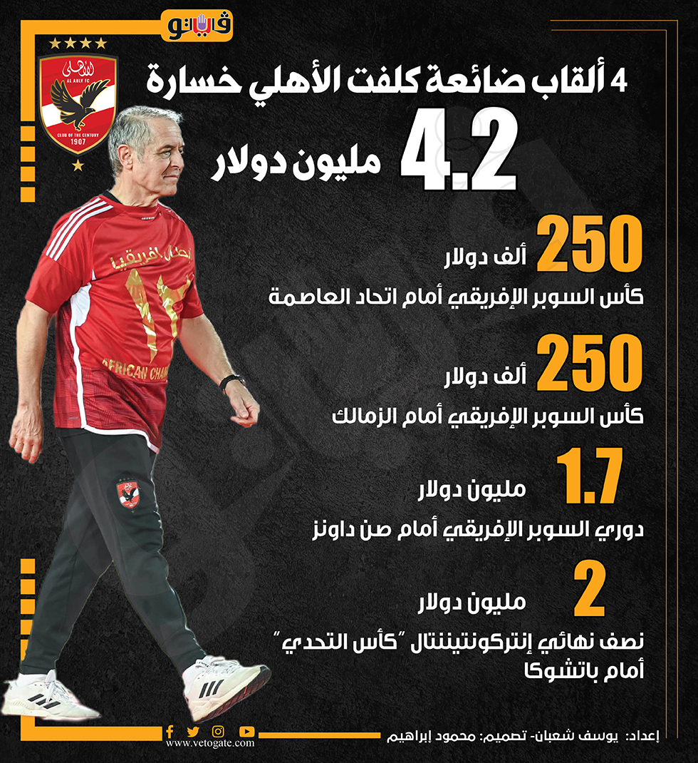 4 ألقاب ضائعة كلفت الأهلي خسارة 4.2 مليون دولار (إنفوجراف)