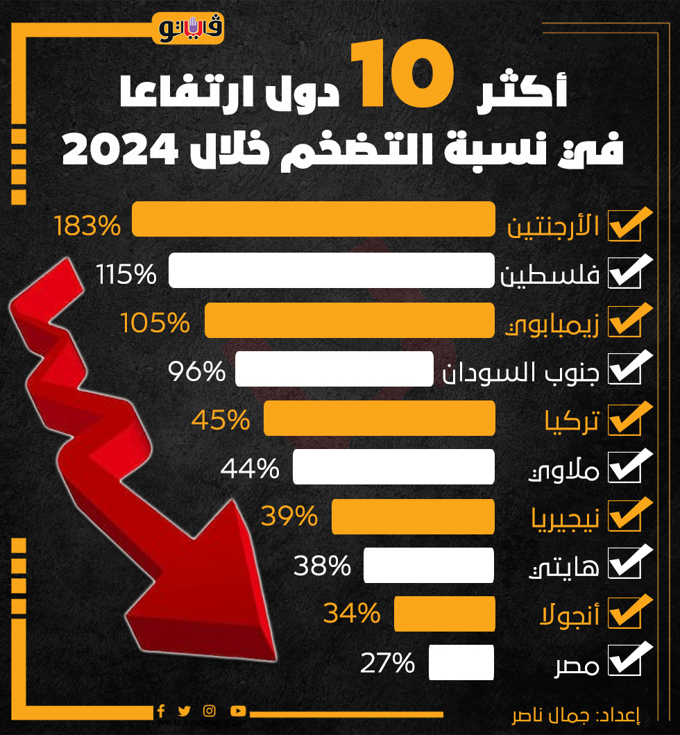 أكثر 10 دول ارتفاعا في نسبة التضخم خلال 2024 (إنفوجراف)