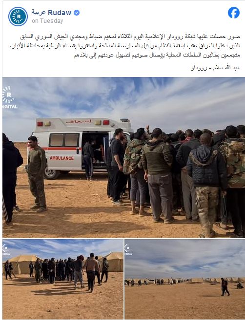 ولجأ عدد من الجنود السوريين إلى العراق مع سقوط نظام بشار الأسد، وتم إيواؤهم في مخيم على حدود محافظة الأنبار.