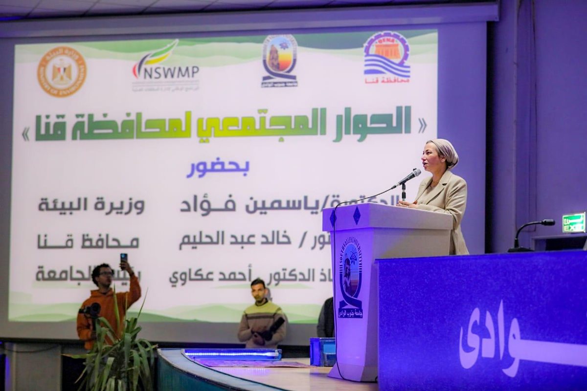 جاء ذلك خلال زيارتها لمحافظة قنا وحضورها حوارًا مجتمعيًّا بجامعة جنوب الوادي، حيث استعرضت جهود الوزارة في مجال حماية البيئة والموارد الطبيعية، ودعم الاستثمار البيئي والمناخي.