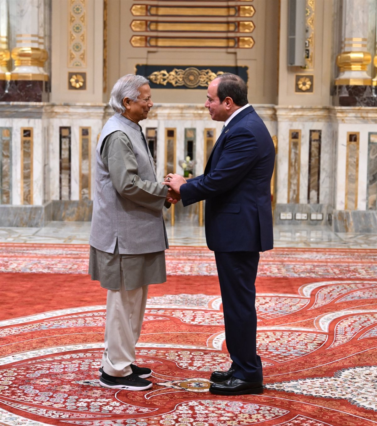 كما التقى الرئيس السيسي، بالدكتور محمد يونس، رئيس الحكومة الانتقالية المؤقتة في بنجلاديش، وذلك على هامش قمة الدول الثماني النامية للتعاون الاقتصادي المنعقدة بالعاصمة الإدارية الجديدة.