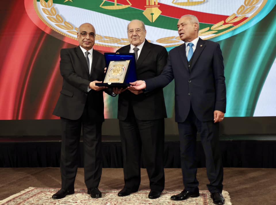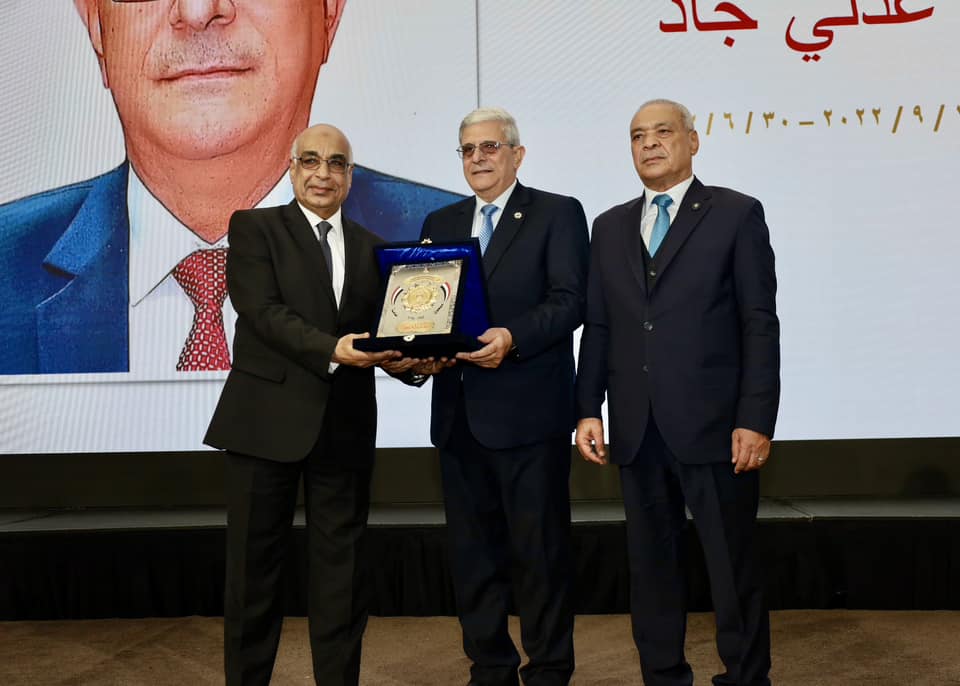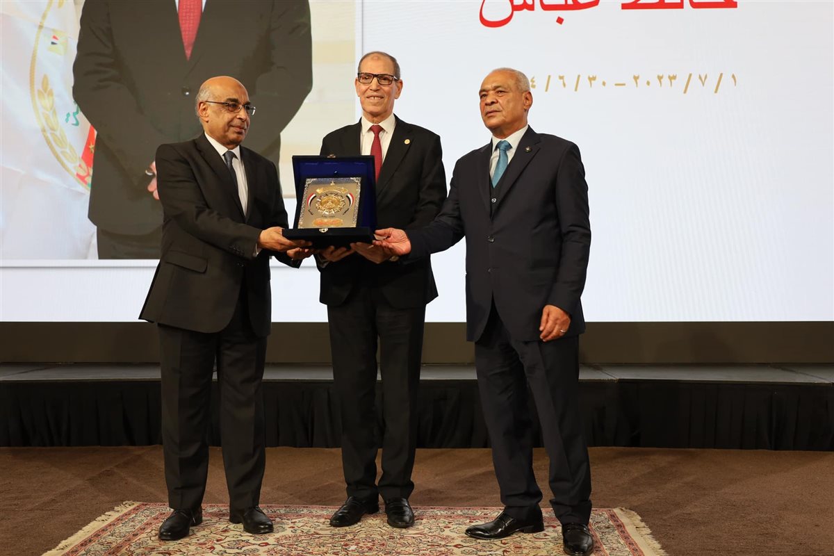 وعقب ذلك تفضل المستشار عبد الراضي صديق - رئيس الهيئة بإهداء المستشار عبد الوهاب عبد الرازق - رئيس مجلس الشيوخ، والمستشار عدنان فنجري - وزير العدل، درع النيابة الإدارية.