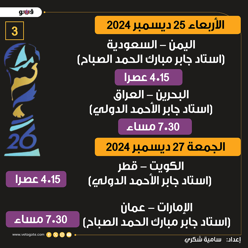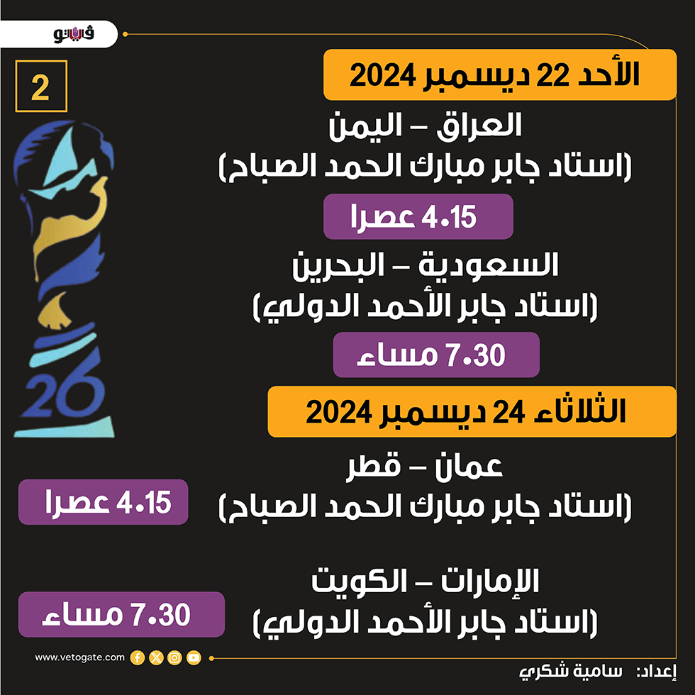 جدول مواعيد مباريات خليجي 26 (إنفوجراف)