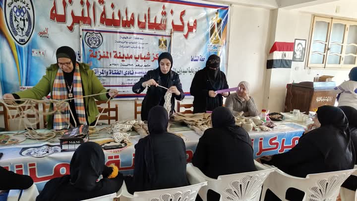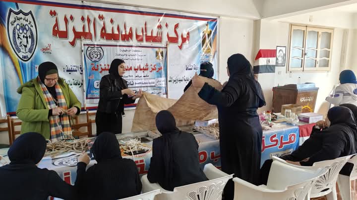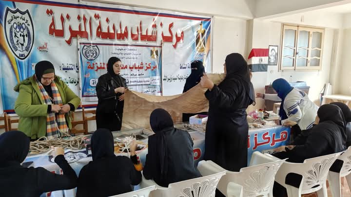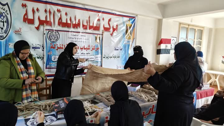 ورشة تدريبية لعمل المشغولات اليدوية من الخيش بمركز شباب مدينة المنزلة