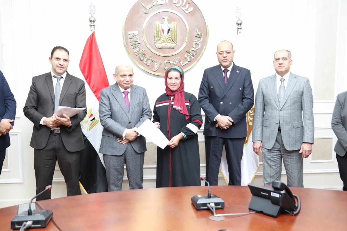 حضرت تسليم العقود هبة أحمد مدير عام الإدارة العامة للتشغيل بوزارة العمل، وأحمد مصطفى، المشرف العام على إدارة التطبيقات بمركز المعلومات.