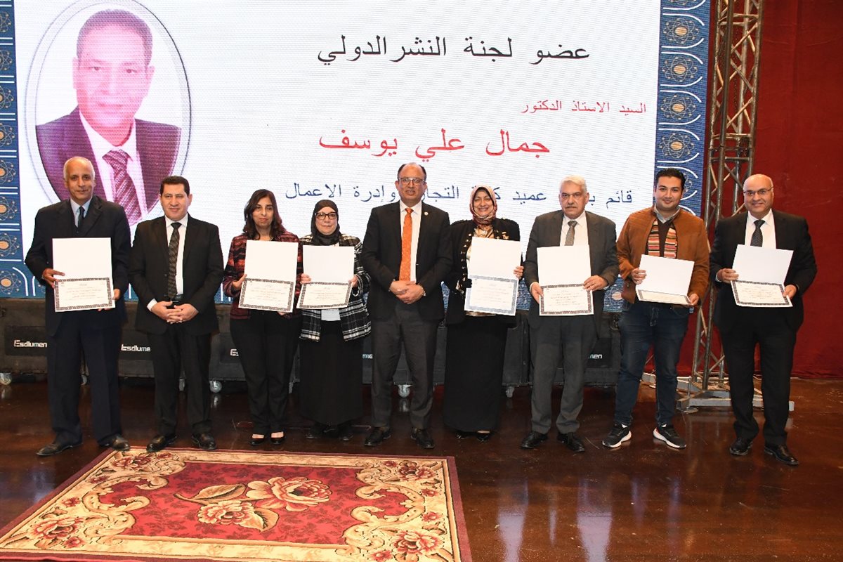 كما تم تكريم أعضاء لجنة النشر الدولي بجامعة حلوان وهم الدكتورة مهجه شفيق عبد الله أستاذ متفرغ بكلية العلوم، الدكتورة منى فؤاد عطية أستاذ متفرغ بكلية الآداب، الدكتورة إيمان جابر حجاج أستاذ متفرغ بكلية الصيدلة، الدكتور محمد كمال عبد الرحمن أستاذ بكلية الهندسة بحلوان، الدكتور نبيل عبد السلام الأستاذ بكلية التربية الفنية، الدكتور جمال علي يوسف قائم بعمل اعمال عميد كليه التجاره واداره الاعمال، الدكتور احمد كارم أحمد مدير مركز دعم البحث العلمي.