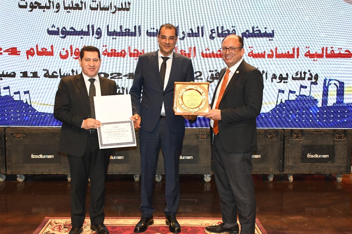 كما تم تكريم الحاصلين على جائزة التميز في الحصول على التمويل الخارجي للمشروعات البحثية وفاز بالمركز الأول الدكتور محمود المسلاوي عميد كليه الهندسه بحلوان.