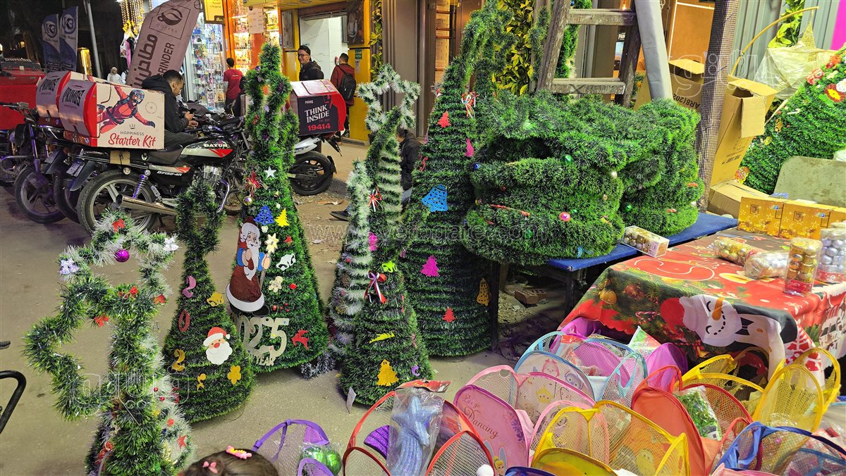 عند التجول في الشارع، تجد المتاجر مكتظة بالأشجار الاصطناعية التي تأتي بأحجام وألوان مختلفة، إلى جانب الكرات اللامعة وأشرطة الزينة التي تتنوع بين البسيطة والفاخرة.