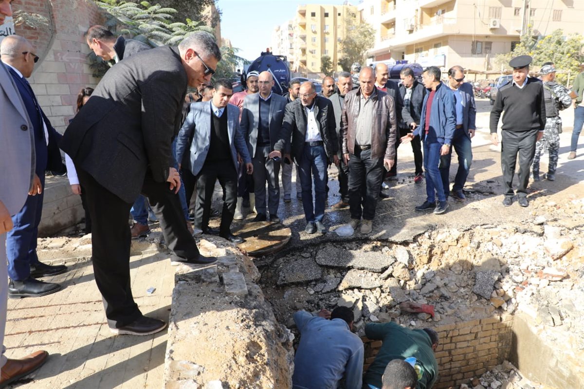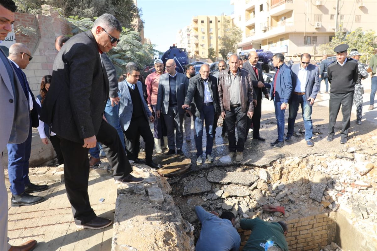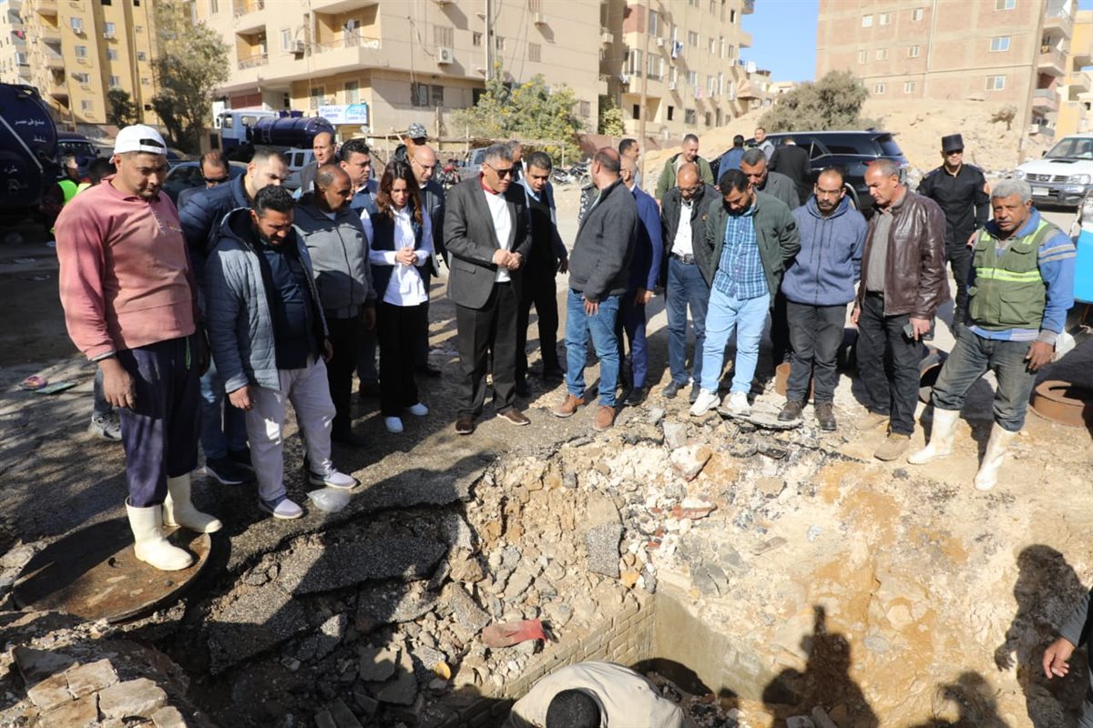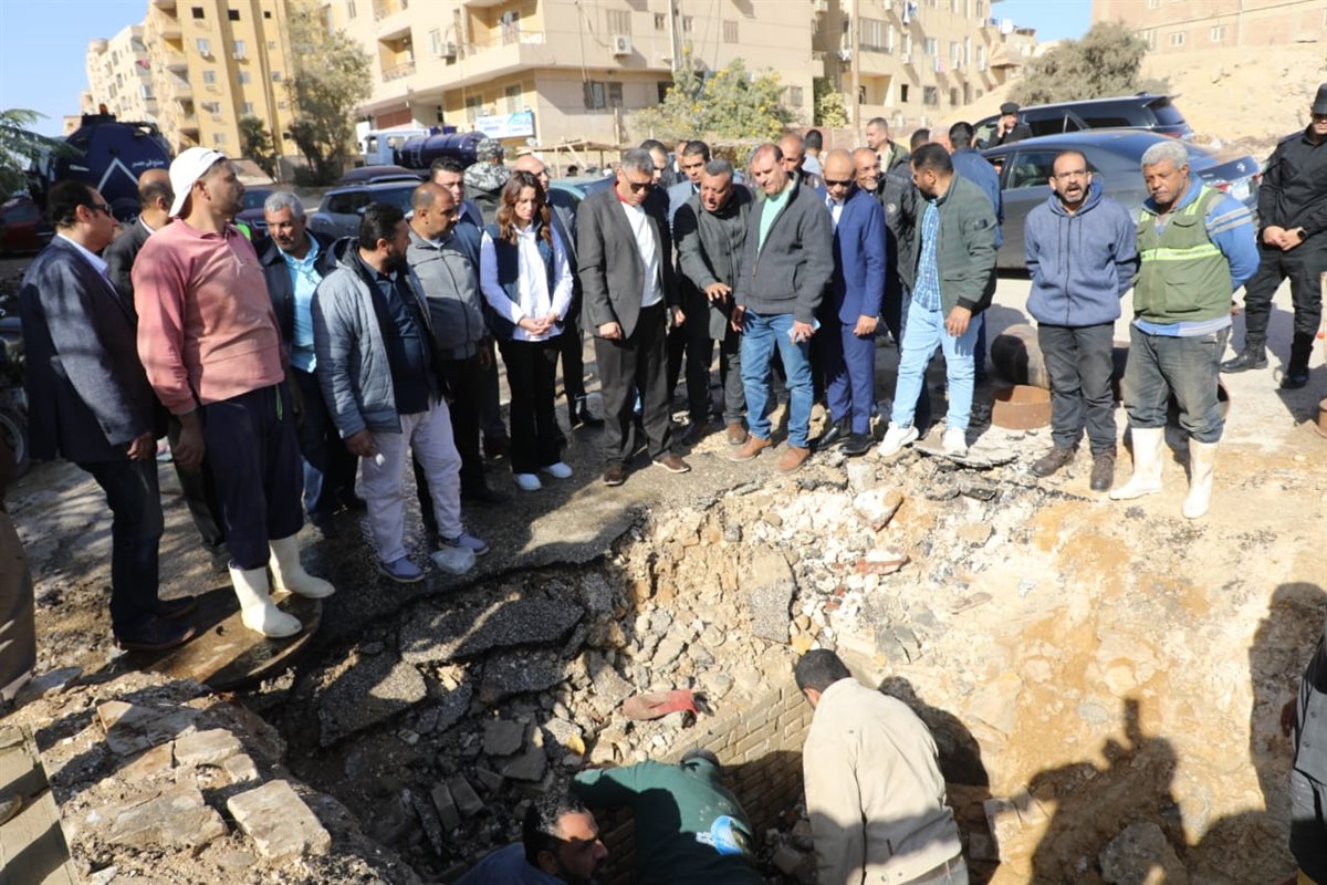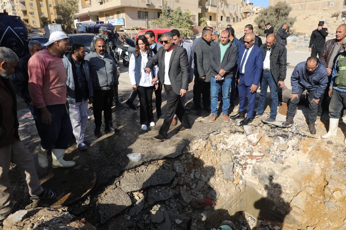 محافظ الجيزة يتفقد أعمال إصلاح كسر مفاجئ بخط مياه بحدائق الأهرام (صور)