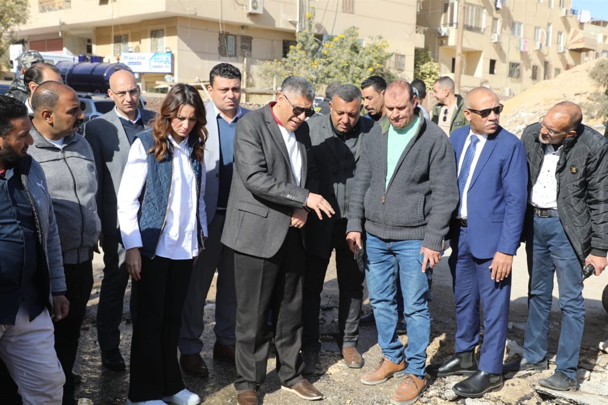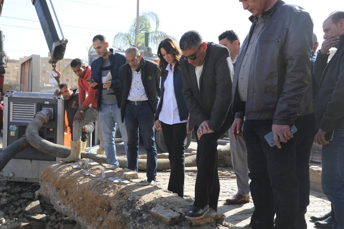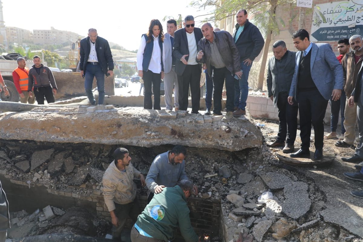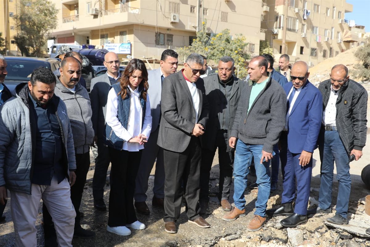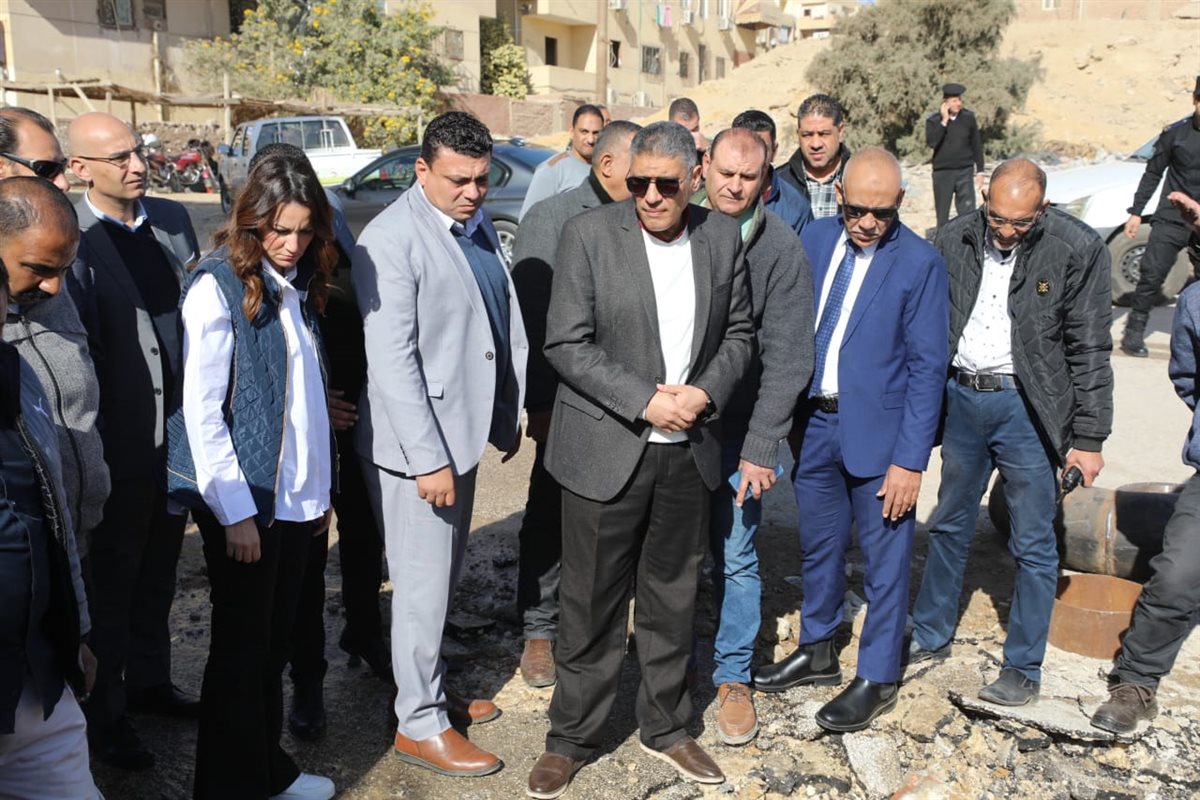 محافظ الجيزة يتفقد أعمال إصلاح كسر مفاجئ بخط مياه بحدائق الأهرام (صور)