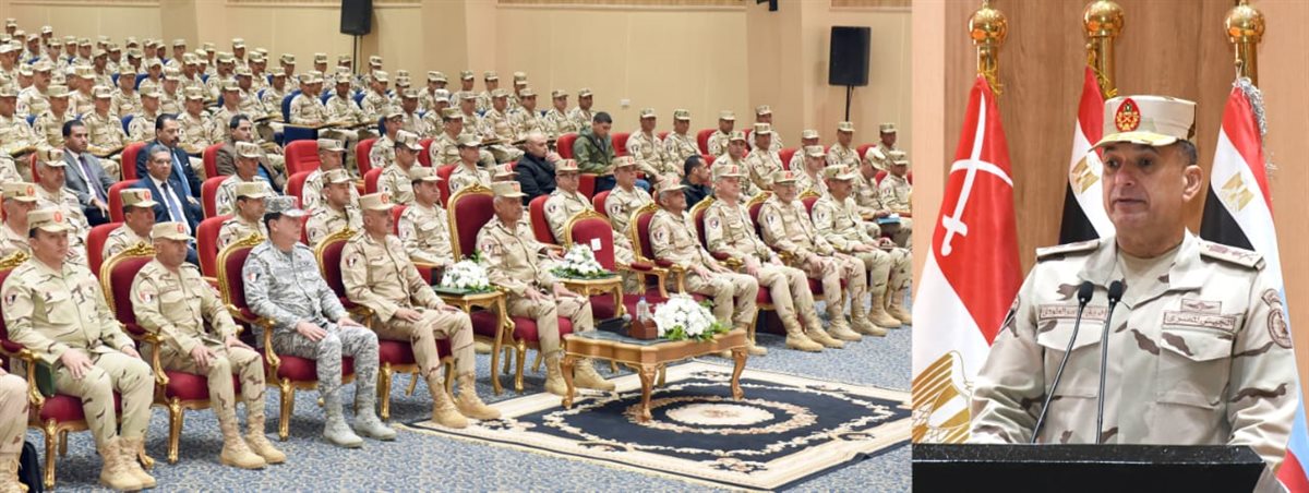ونقل الفريق أول عبد المجيد صقر تحيات وتقدير السيد الرئيس عبد الفتاح السيسى رئيس الجمهورية القائد الأعلى للقوات المسلحة لمقاتلي الدفاع الجوى، مشيرًا إلى حرص القيادة العامة للقوات المسلحة على التطوير الدائم لخطط وبرامج التدريب القتالى وفقًا للأسس العلمية المدروسة وأن الفرد المقاتل يُعد الثروة الحقيقية للقوات المسلحة وركيزتها للدفاع عن الوطن وصون مقدساته، واستعرض القائد العام للقوات المسلحة خلال كلمته الأحداث الجارية فى ظل ماتموج به المنطقة من متغيرات متسارعة وانعكاساتها على أمن مصر القومى، مؤكدًا أن الدولة المصرية تمتلك القدرة لتحقيق التوازن الإقليمى بالمنطقة.