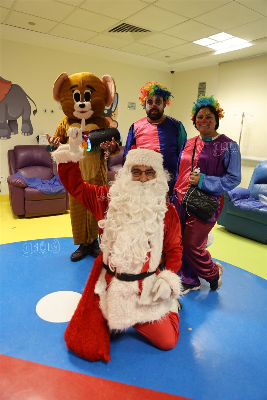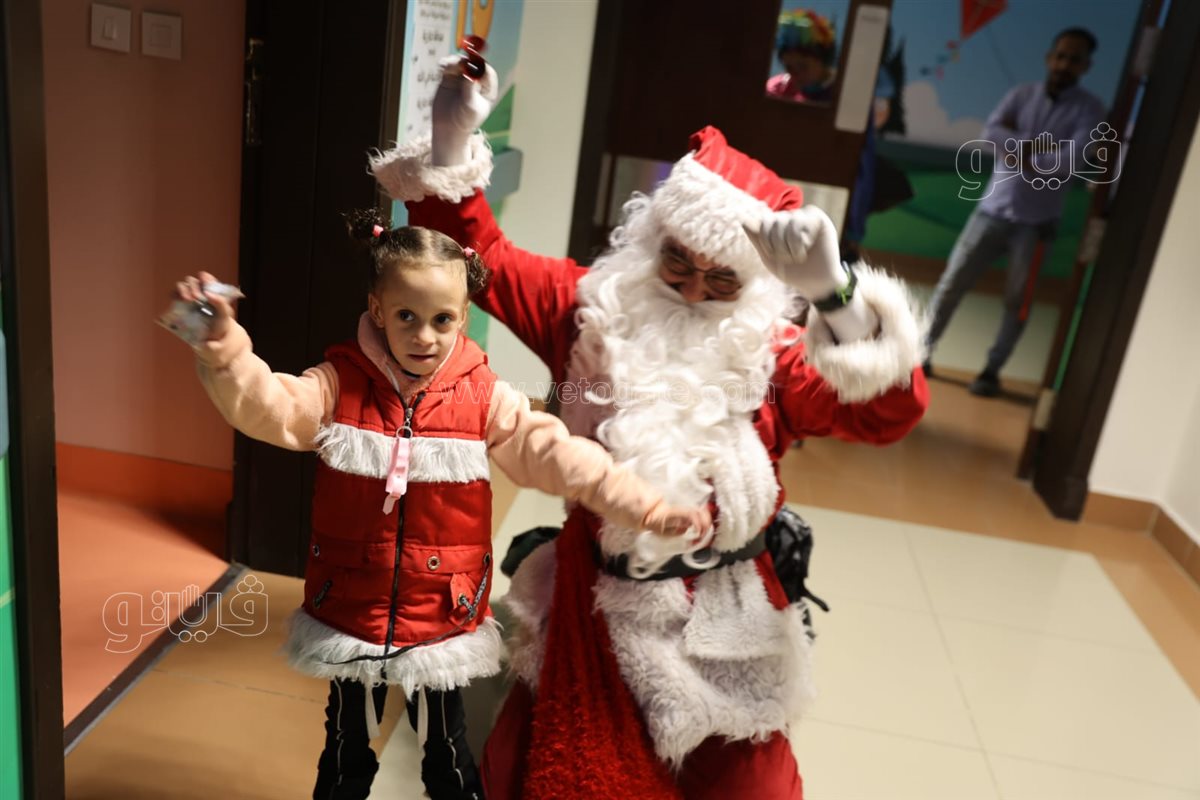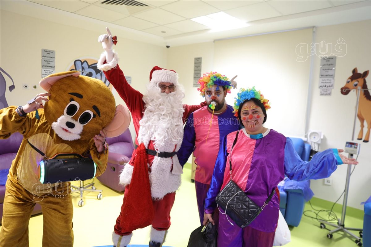 والتف الأطفال حول «بابا نويل» الذى رسم البهجة والسعادة للأطفال الصغار بظهوره المفاجئ، أثناء تلقيهم العلاج الإشعاعي، داخل غرف العلاج مرتديًا زي"سانتا كلوز"، حاملا معه هدايا الكريسماس والورود والألعاب، وقدمها لهم وهو يغنى أغاني الكريسماس، وسط تفاعل من الأطفال وذويهم، وارتسمت البسمة والبهجة على وجوه الأطفال الصغار.