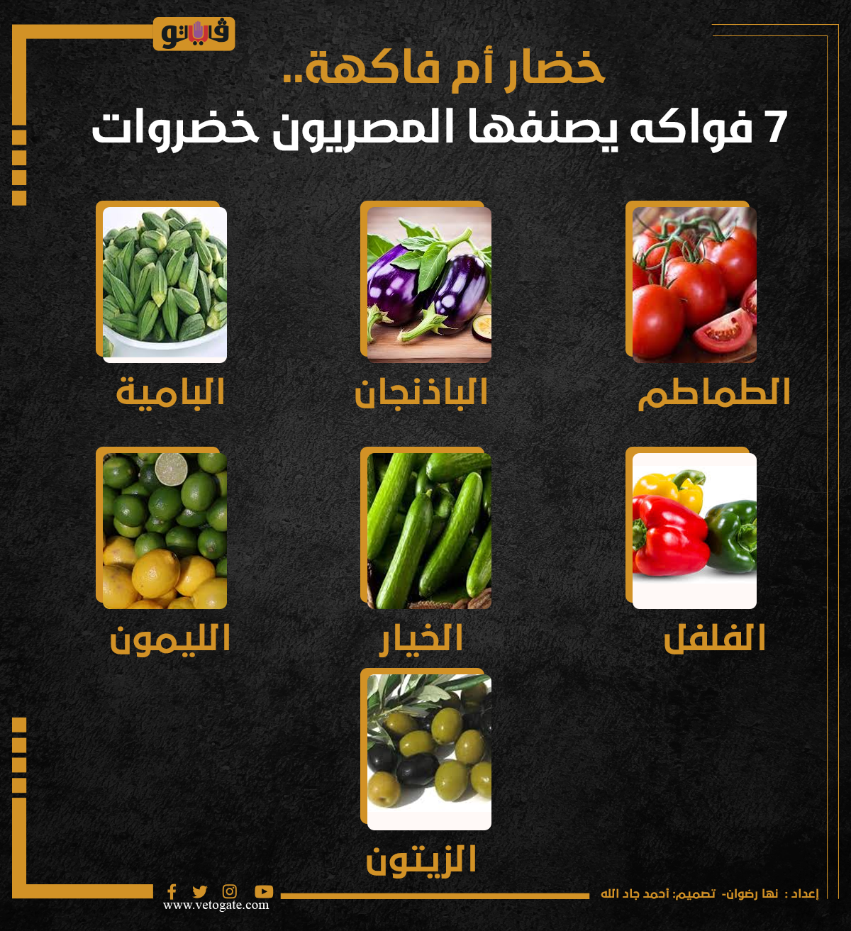 خضار أم فاكهة.. 7 فواكه يصنفها المصريون خضروات (إنفوجراف)