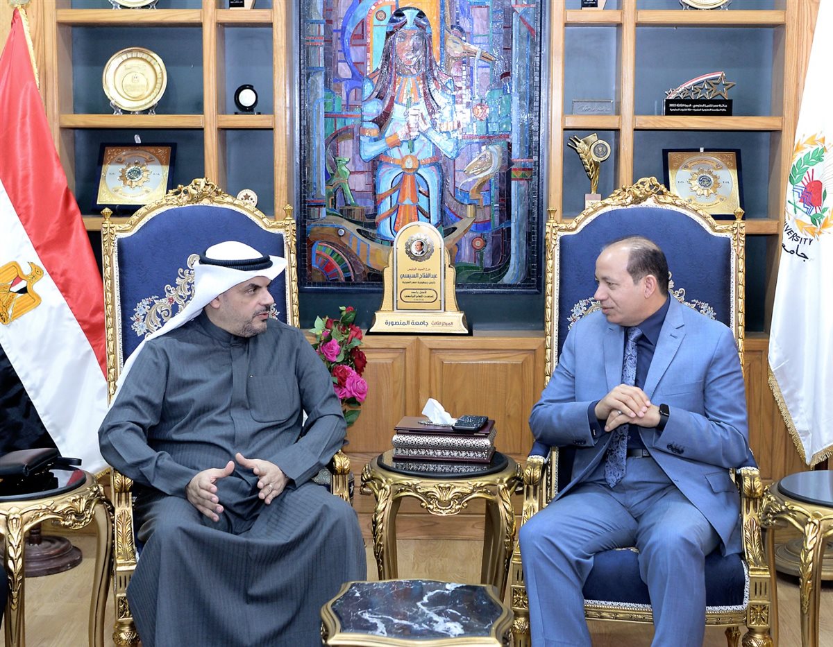 رئيس جامعة المنصورة يستقبل رئيس المكتب الثقافي بسفارة الكويت
