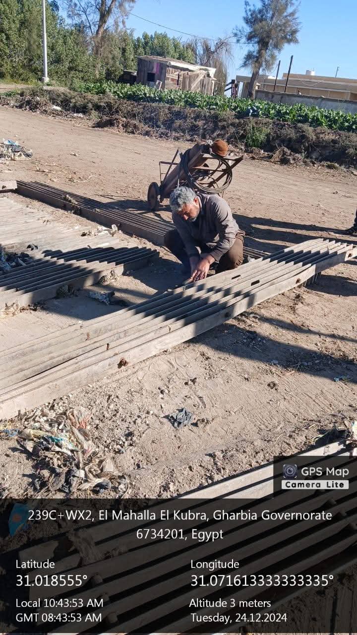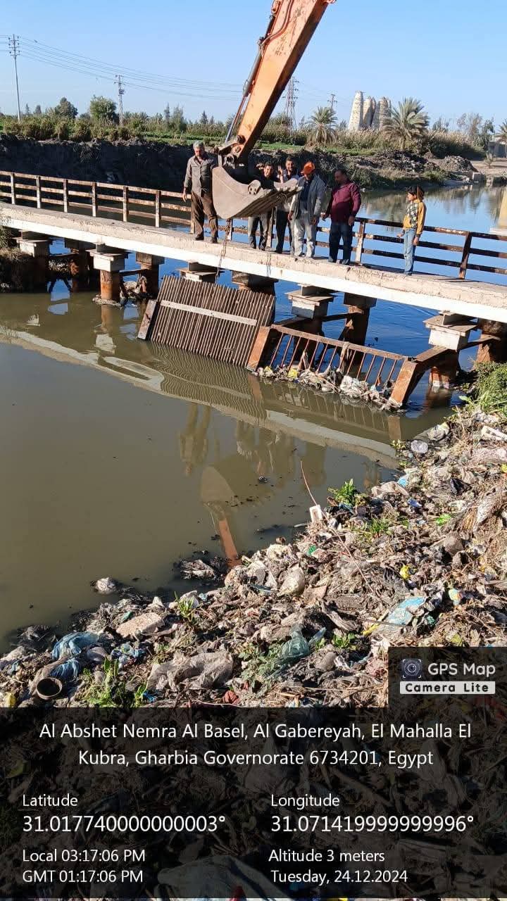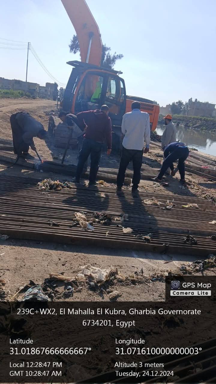 تركيب شبكة أمام محطة طلمبات السجاعية لتحسين خدمات الصرف الزراعي بالمحلة (صور)