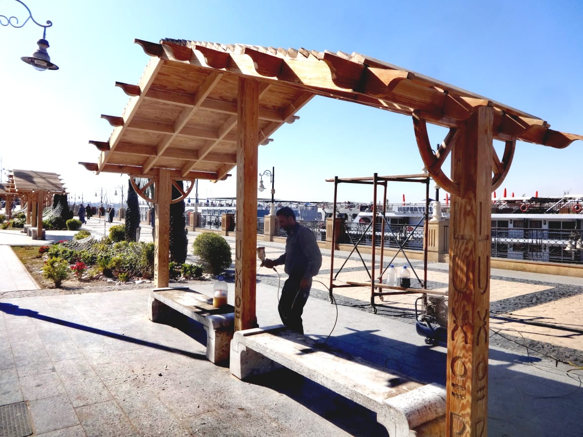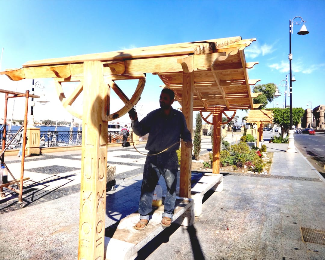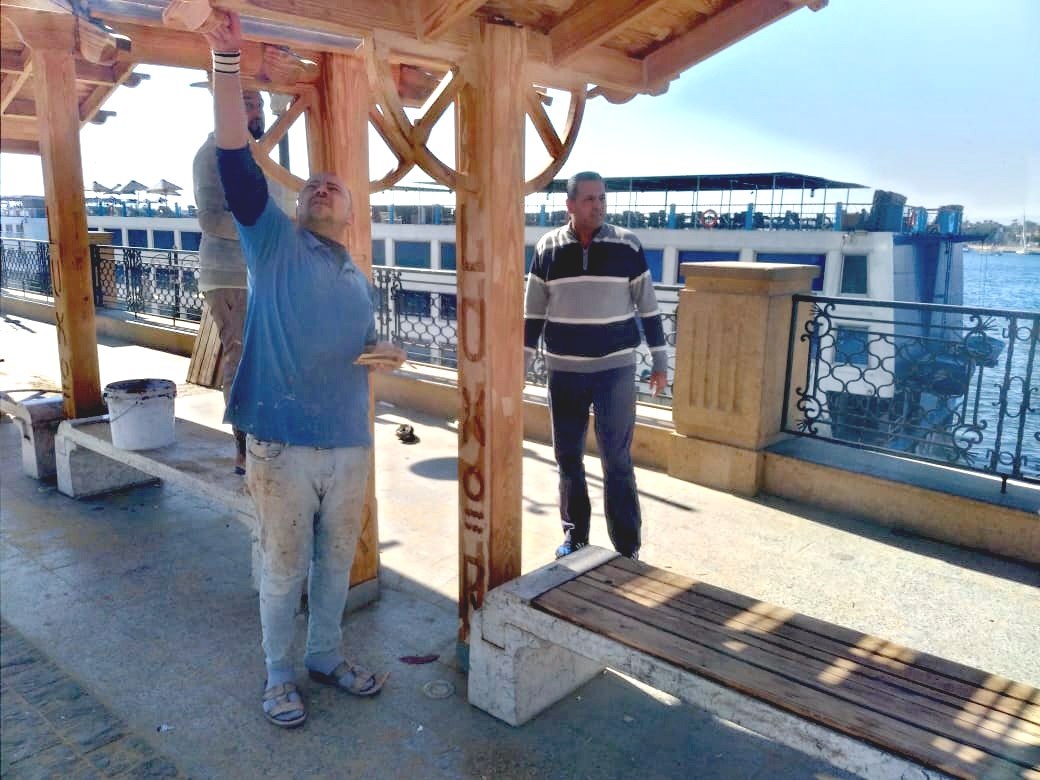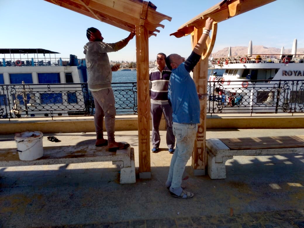 الأقصر تواصل صيانة البرجولات على كورنيش النيل