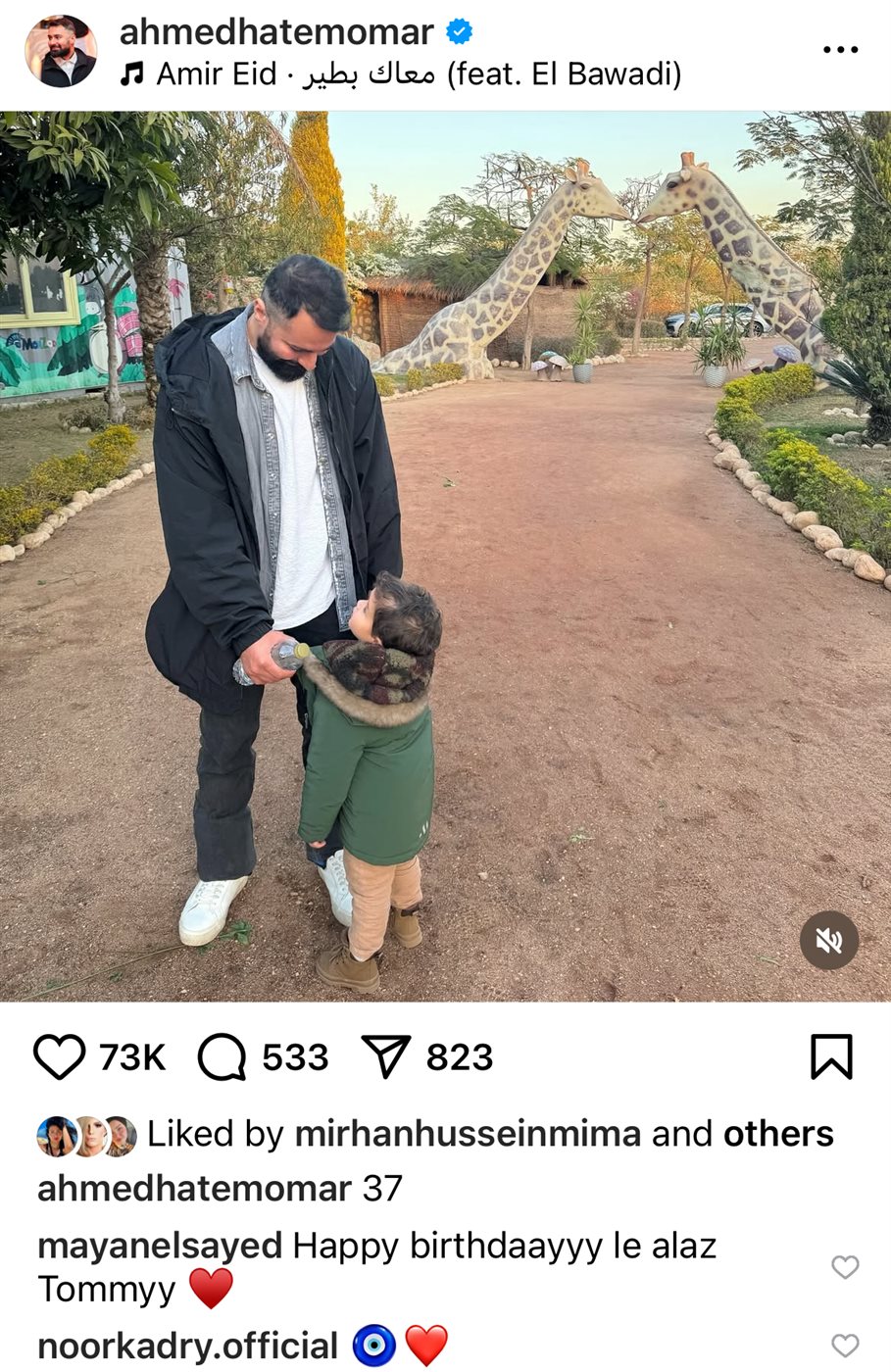 ونشر أحمد حاتم، صورة برفقة نجله عبر موقع الصور الشهير “انستجرام”:"