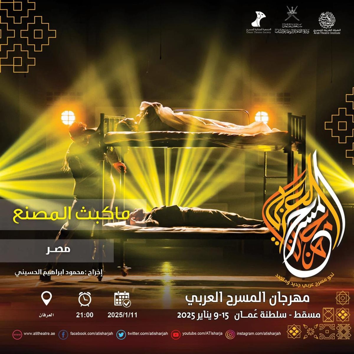 تشارك مسرحية “ماكبث المصنع" للمخرج محمود الحسيني “كاجو”، ضمن فعاليات مهرجان المسرح العربى الذى تقيمه الهيئة العربية للمسرح، ويقام هذا العام فى سلطنة عمان، فى الفترة من 9 حتى 15 يناير 2025.