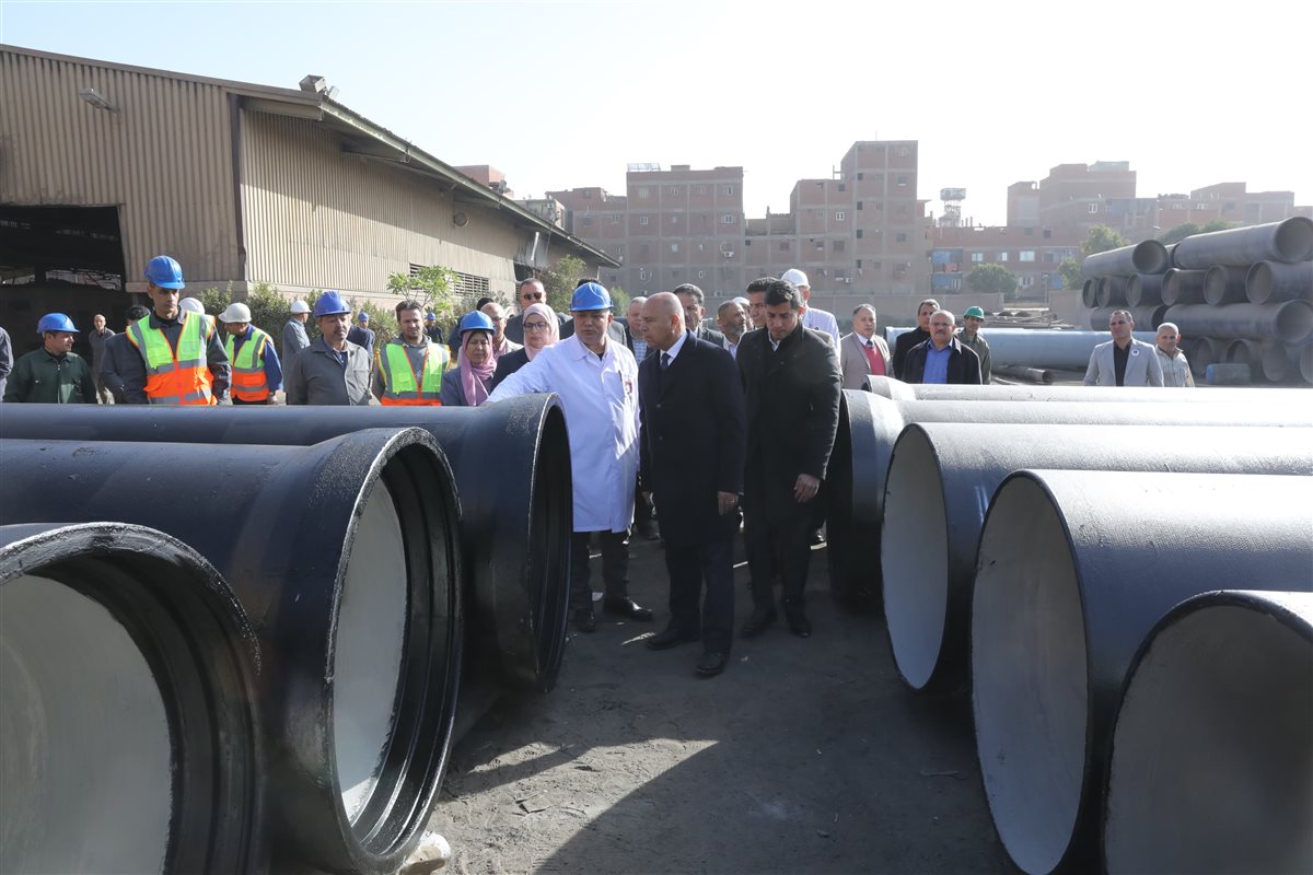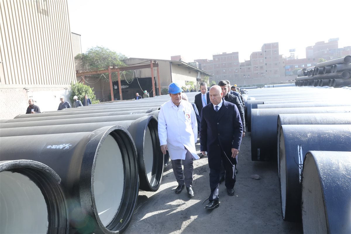 بدأت الجولة بتفقد مصنع مواسير الزهر المرن الذي يقوم بإنتاج مواسير الزهر المرن بأقطار من 100 مم إلى 1000 مم، إذ تفقد الوزير كافة مراحل إنتاج المواسير بداية بعملية السبك وحتى المنتج النهائي تمهيدًا للتوريد.