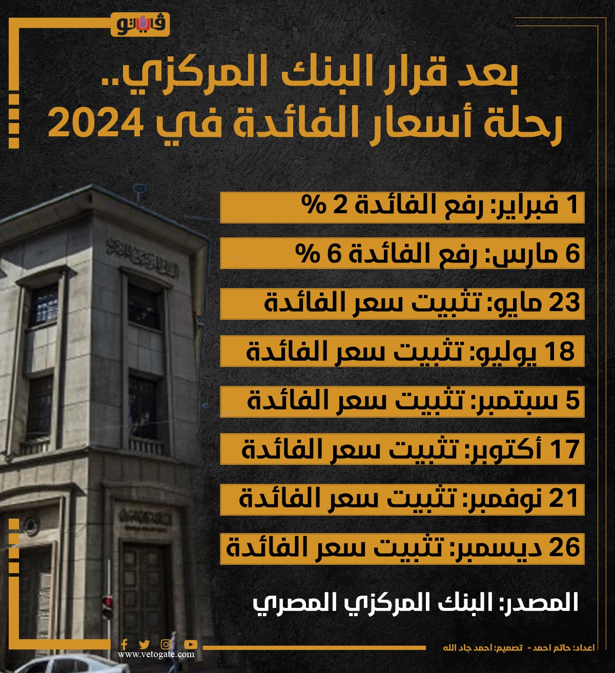 بعد قرار البنك المركزي.. رحلة أسعار الفائدة في 2024 (إنفوجراف)