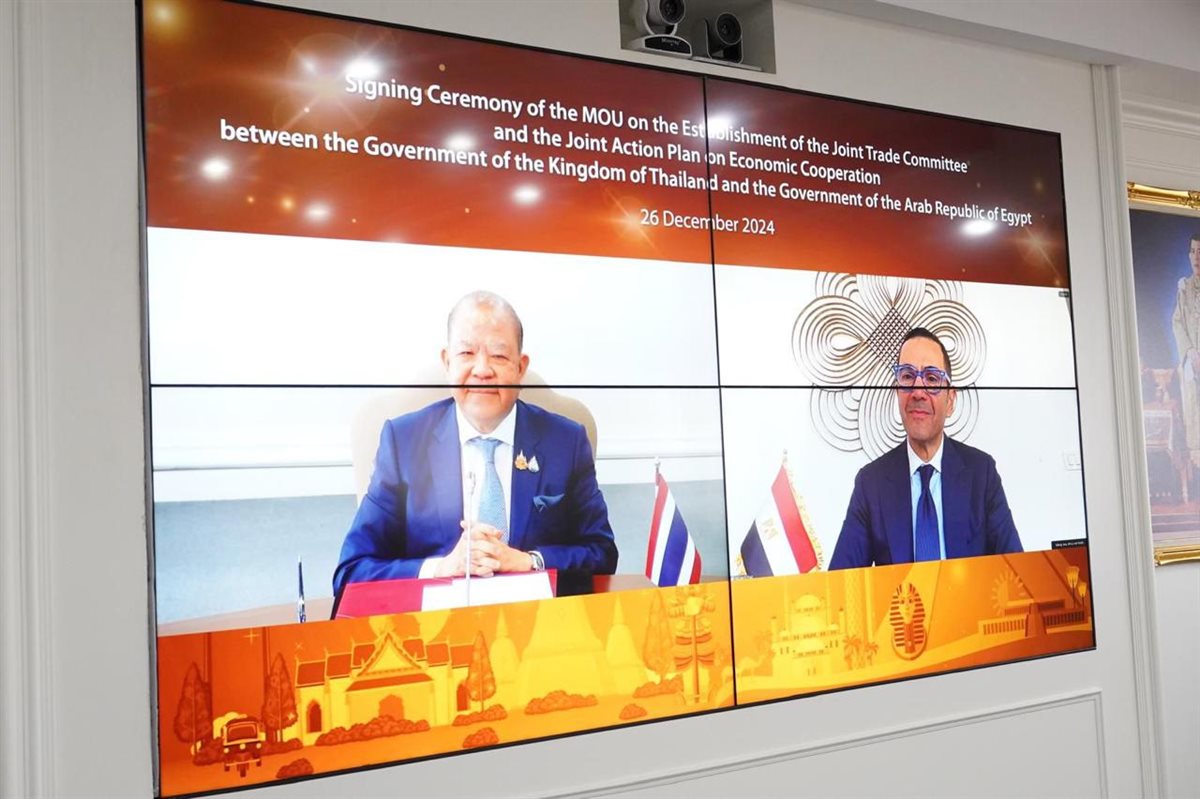 وقع المهندس حسن الخطيب، وزير الاستثمار والتجارة الخارجية، وبيتشاي ناريبتافان، وزير التجارة التايلاندي مذكرة تفاهم لإنشاء لجنة تجارية مشتركة وخطة عمل مشتركة للتعاون الاقتصادي، خلال مراسم توقيع تمت افتراضيا عبر تقنية الفيديو كونفرانس، وذلك في ضوء خطة الدولة المصرية؛ لتعزيز الاقتصاد وجذب الاستثمارات الأجنبية وتيسير حركة التجارة.