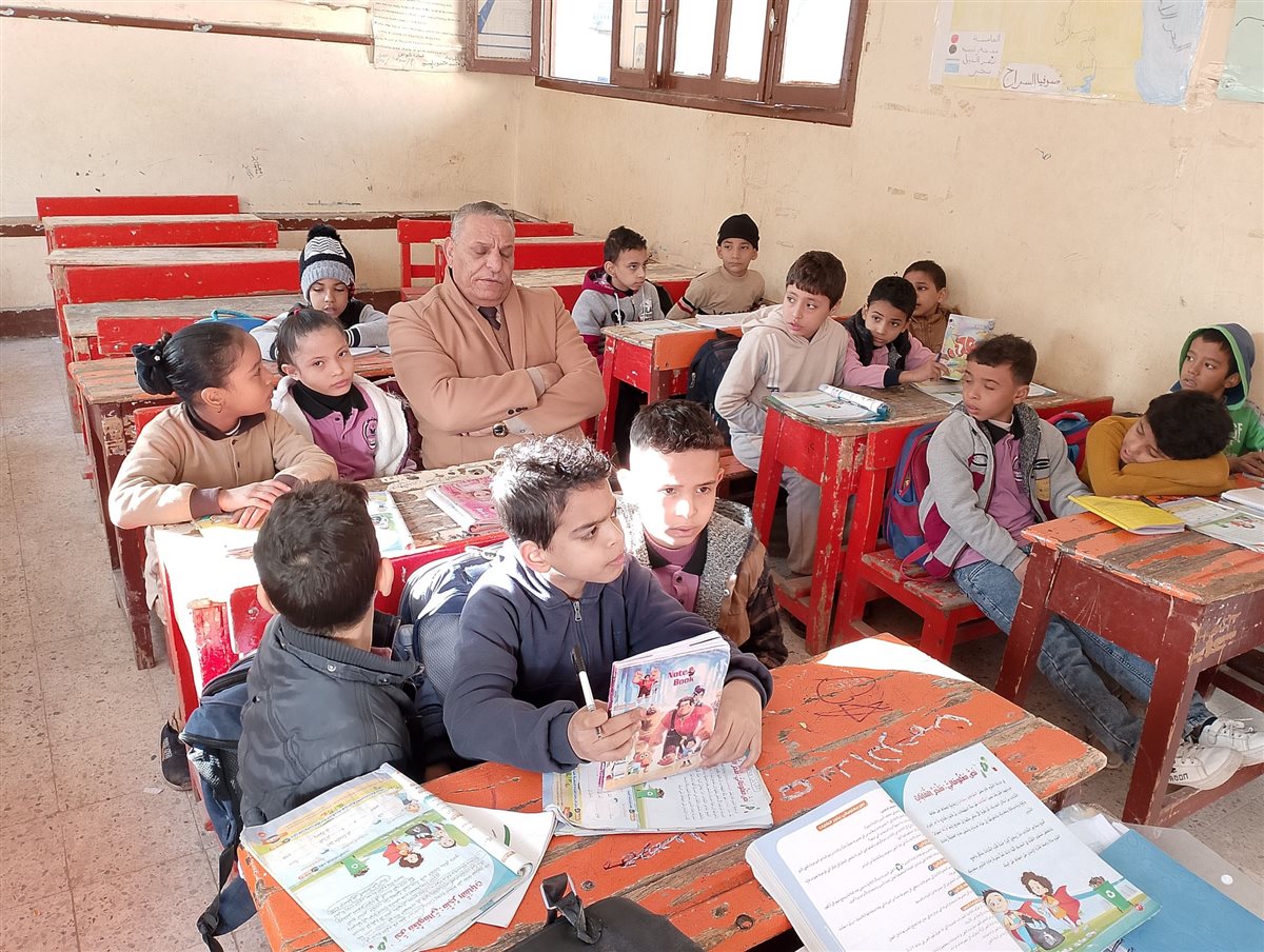 مدير تعليم سوهاج يجلس مع الطلاب فى المقاعد ويستمع لشرح معلمة