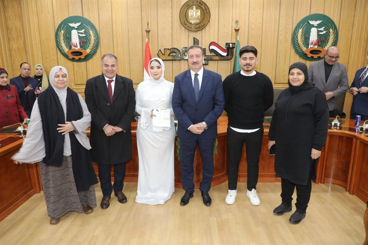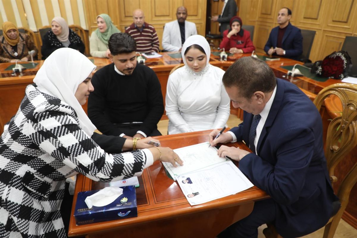 محافظ المنوفية يشهد عقد قران عروسين أيتام ويقدم لهما دعما ماليا (صور)