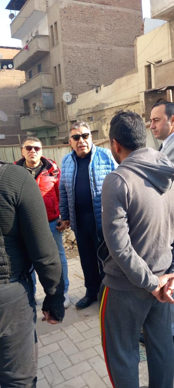 وتفقد مساكن الجلاء وطلب عمل مقايسة لإقامة سور حولها للحفاظ عليها، ورفع التراكمات في محيطها، وسرعة الانتهاء من تشغيل المصاعد بالمساكن، كما وجه بسرعة الانتهاء من أعمال حمام السباحة بشارع الجلاء.