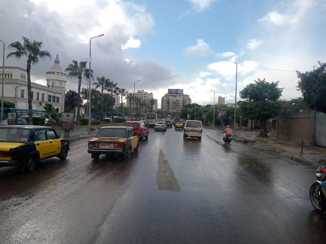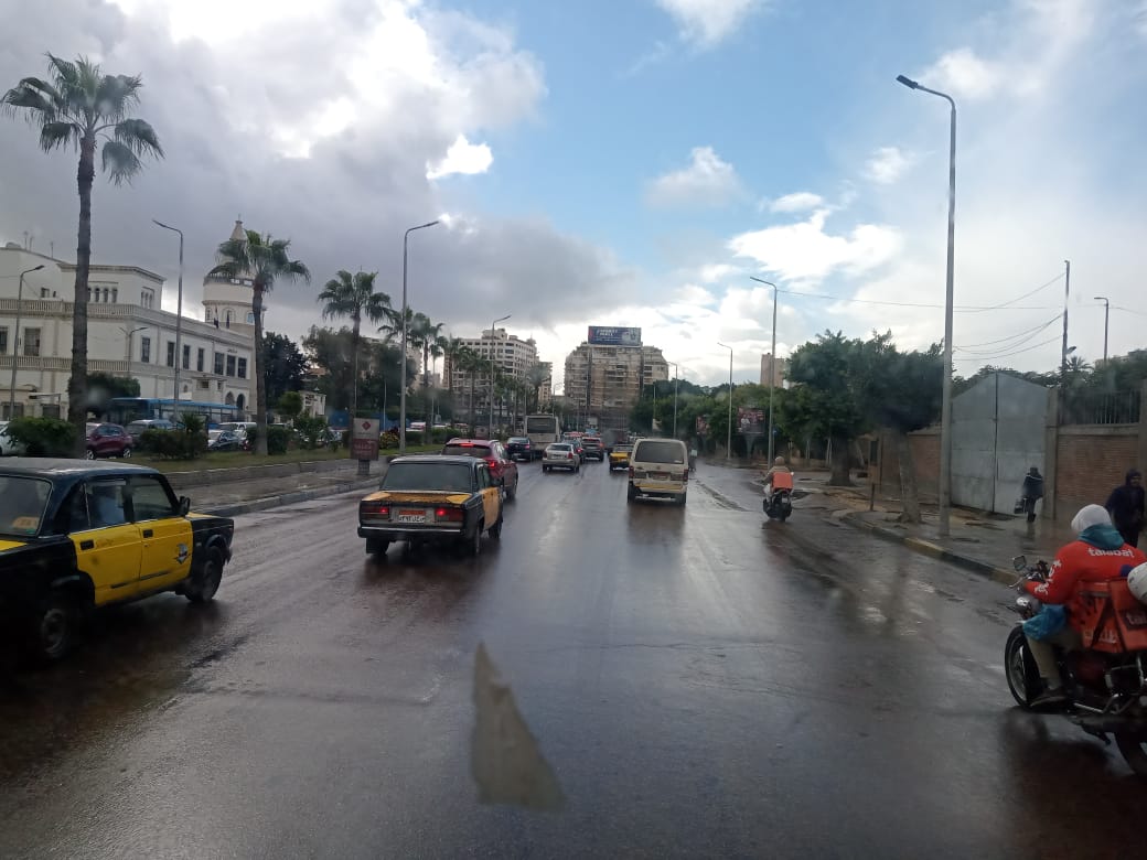 أمطار خفيفة تضرب شوارع وميادين محافظة الإسكندرية