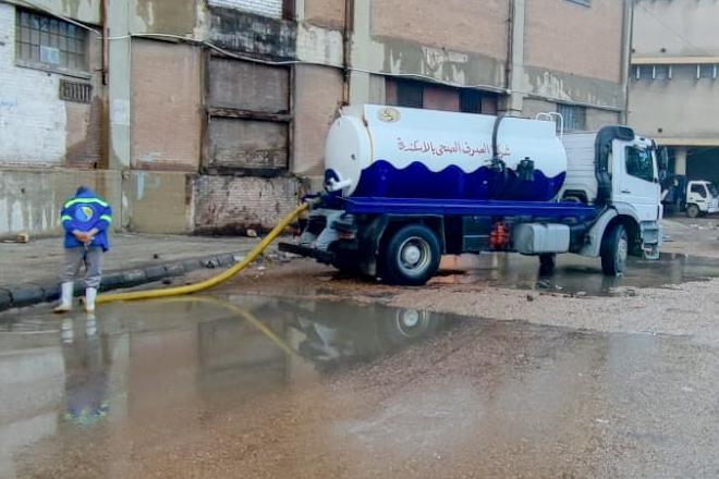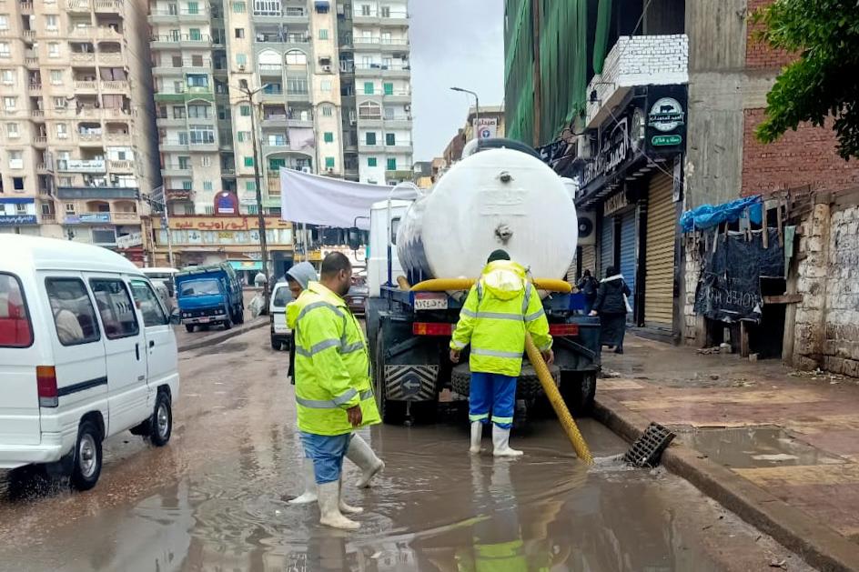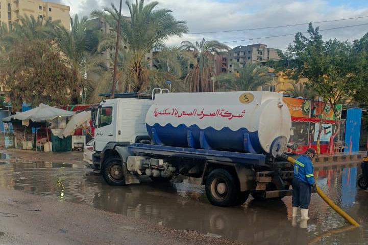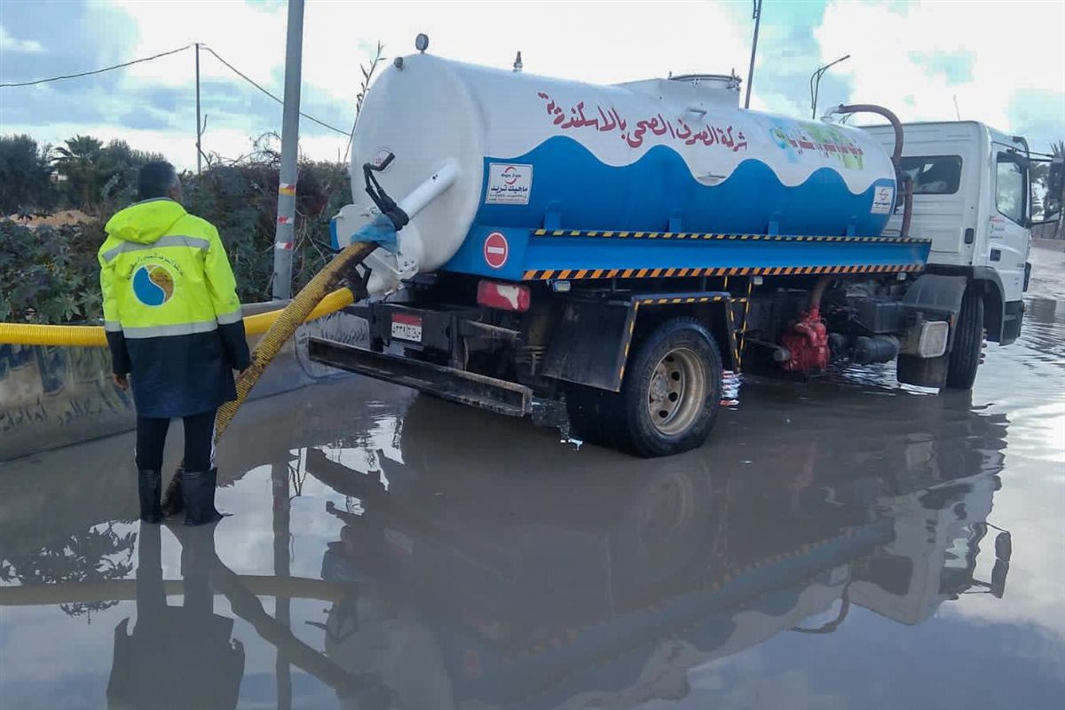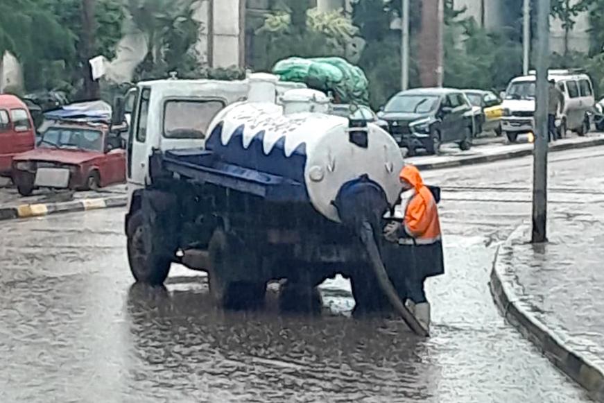 استمرار رفع تراكمات مياه الأمطار فى الإسكندرية (صور)