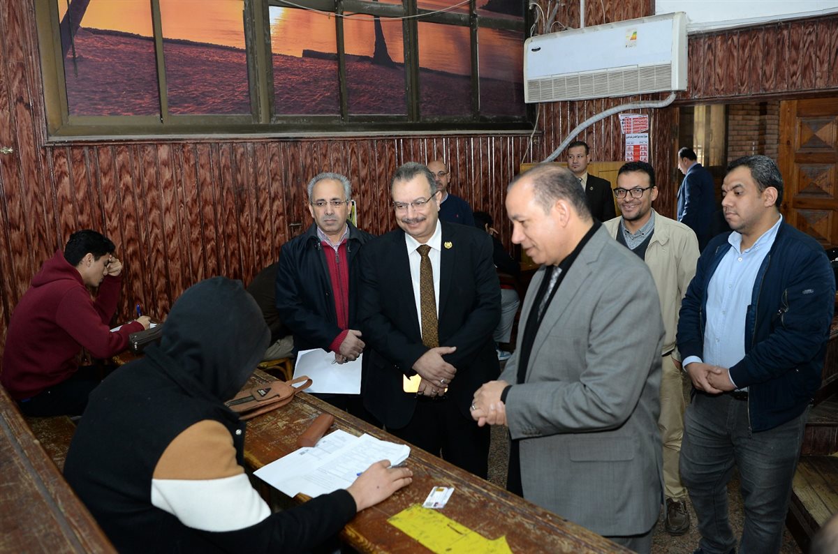 واستطلع رئيس الجامعة خلال الجولة، آراء الطلاب حول طبيعة الامتحانات ومدى صعوبتها وسؤالهم عن أي مشكلات أثناء عقد الامتحانات.