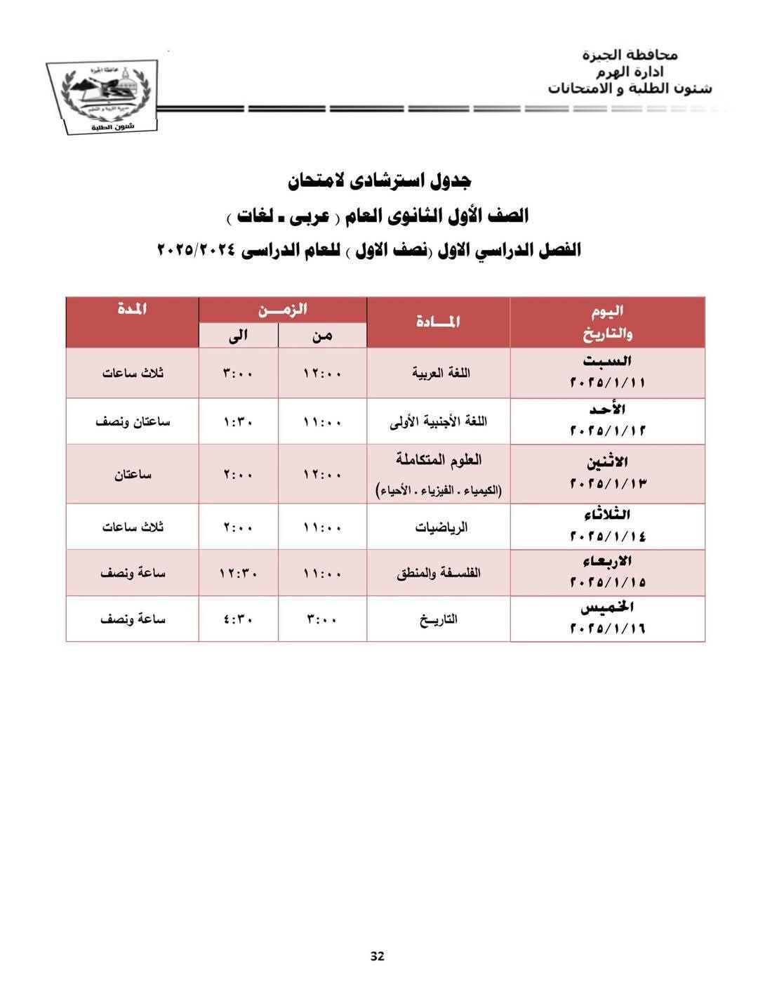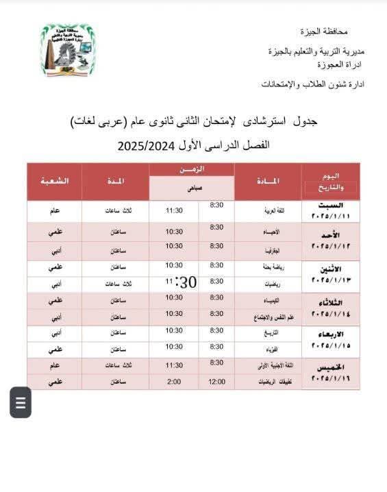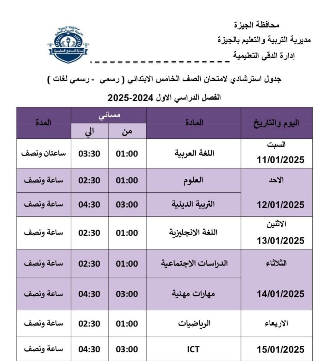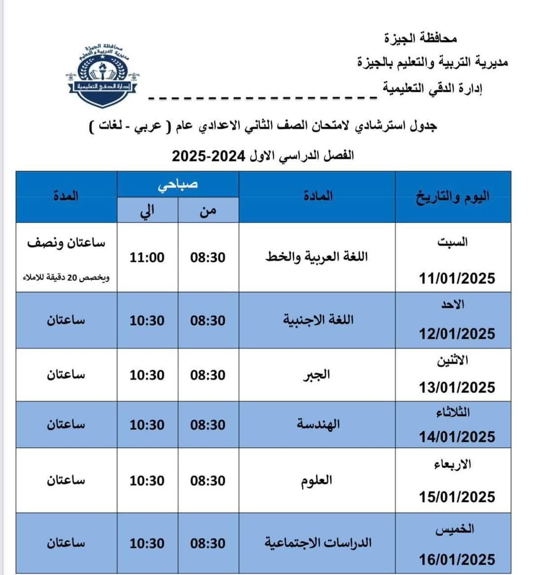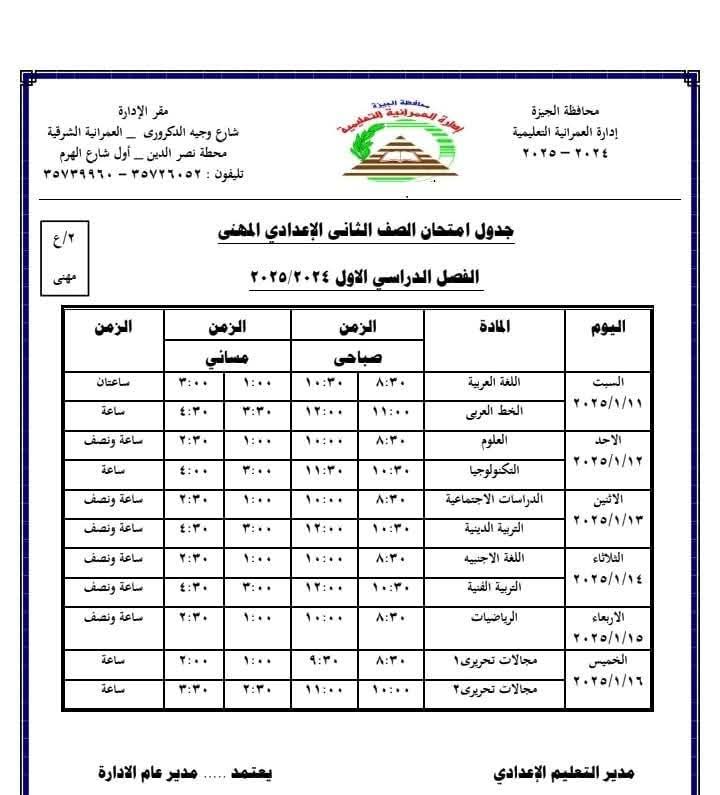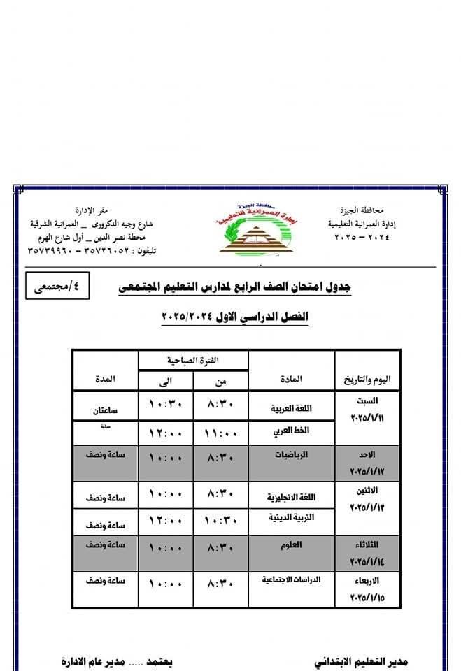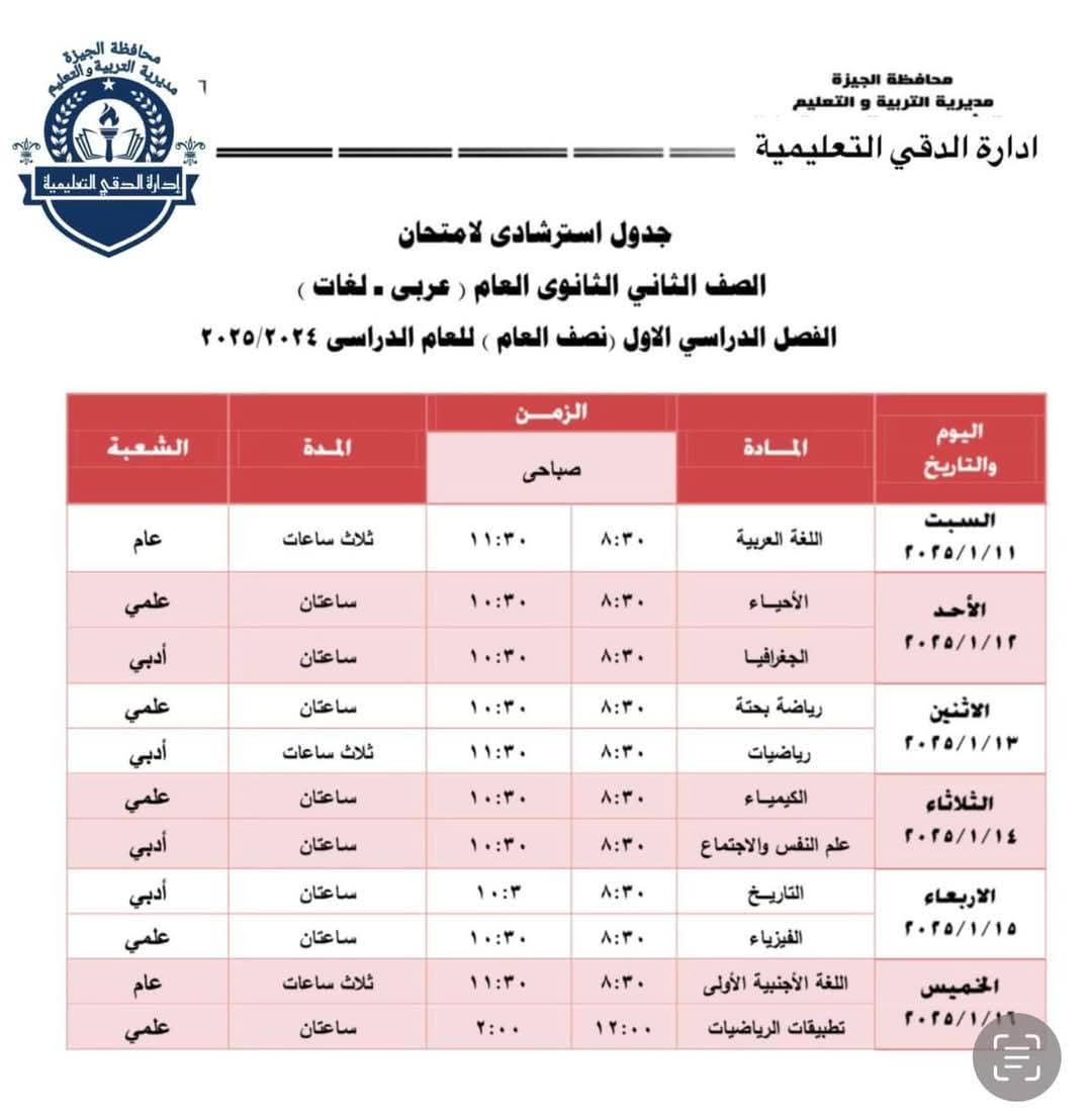 جداول امتحانات الفصل الدراسي الأول لطلاب الهرم والعمرانية والدقي والعجوزة
