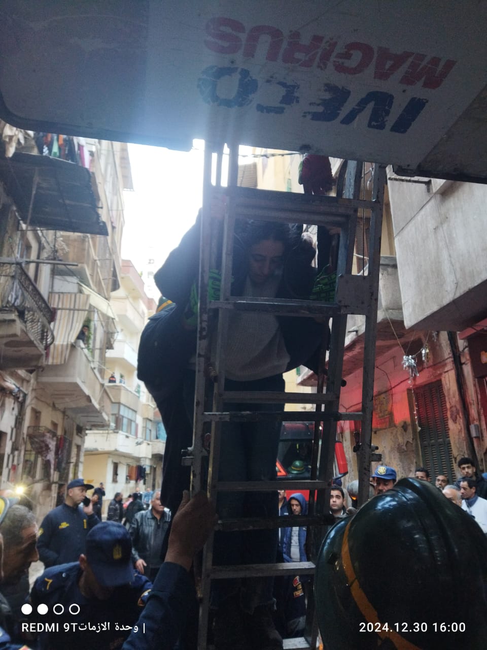 لحظة إنقاذ سكان عقار محتجزين بعد انهيار السلم فى الإسكندرية