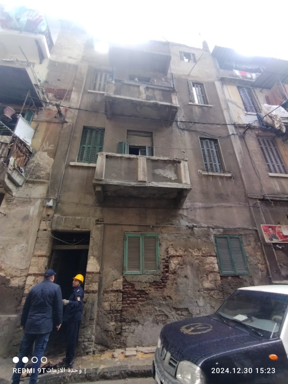 حيث تبين أن العقار عبارة عن دور ارضي+3 أدوار علوية، كما تبين سقوط سلم العقار واحتجاز أسرة مكونة من 3 أفراد، وقد تم إنزالهم بمعرفة الحماية المدنية باستخدام السلم دون وقوع إصابات، وتبين أن العقار صادر له قرار ترميم وإزالة رقم 253 لسنة 2004.