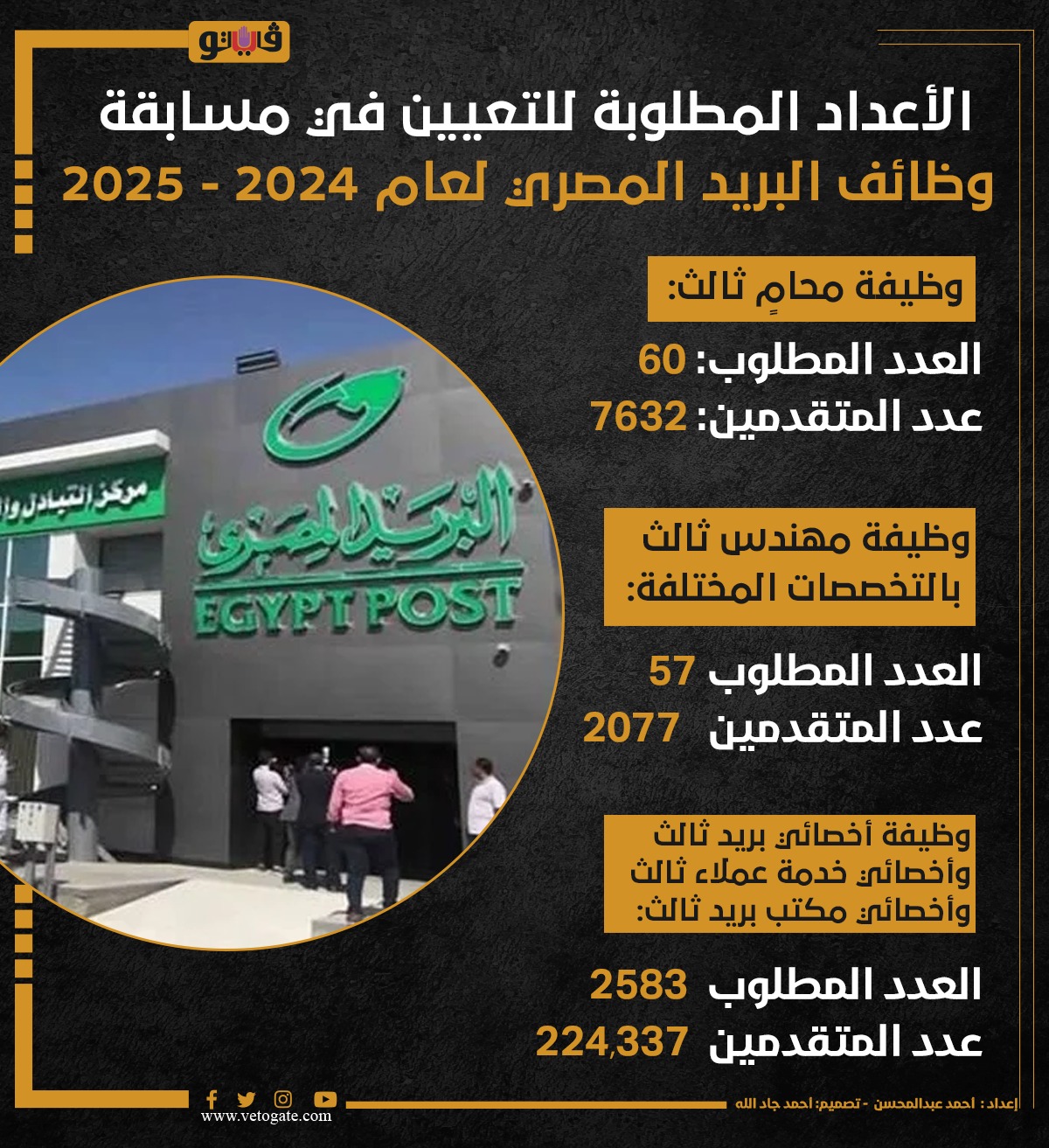 الأعداد المطلوبة للتعيين في مسابقة وظائف البريد المصري لعام 2024 - 2025 (إنفوجراف)