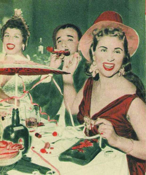 سيدة الشاشة العربية فاتن حمامة فتتذكر أول مرة احتفلت فيها بليلة رأس السنة فقالت فى أحد حواراتها إن أول مرة احتفلت فيها بليلة عيد رأس السنة حينما كانت تشارك موسيقار الأجيال محمد عبدالوهاب فى فيلم “رصاصة فى القلب”، وكانت فى سن المراهقة، كانت فاتن حمامة كما قالت تشعر بسعادة كبيرة بهذا الحفل، وتضاعفت ضحكاتها حينما وجدت بعضًا ممن يعملون خلف الكاميرات يمتلك بعضهم مواهب كبيرة فى تقليد الفنانين ومنهم من قلّد محمد عبدالوهاب نفسه، ومنهم من قلد يوسف وهبى، وغيرهم من الفنانين الكبار.
