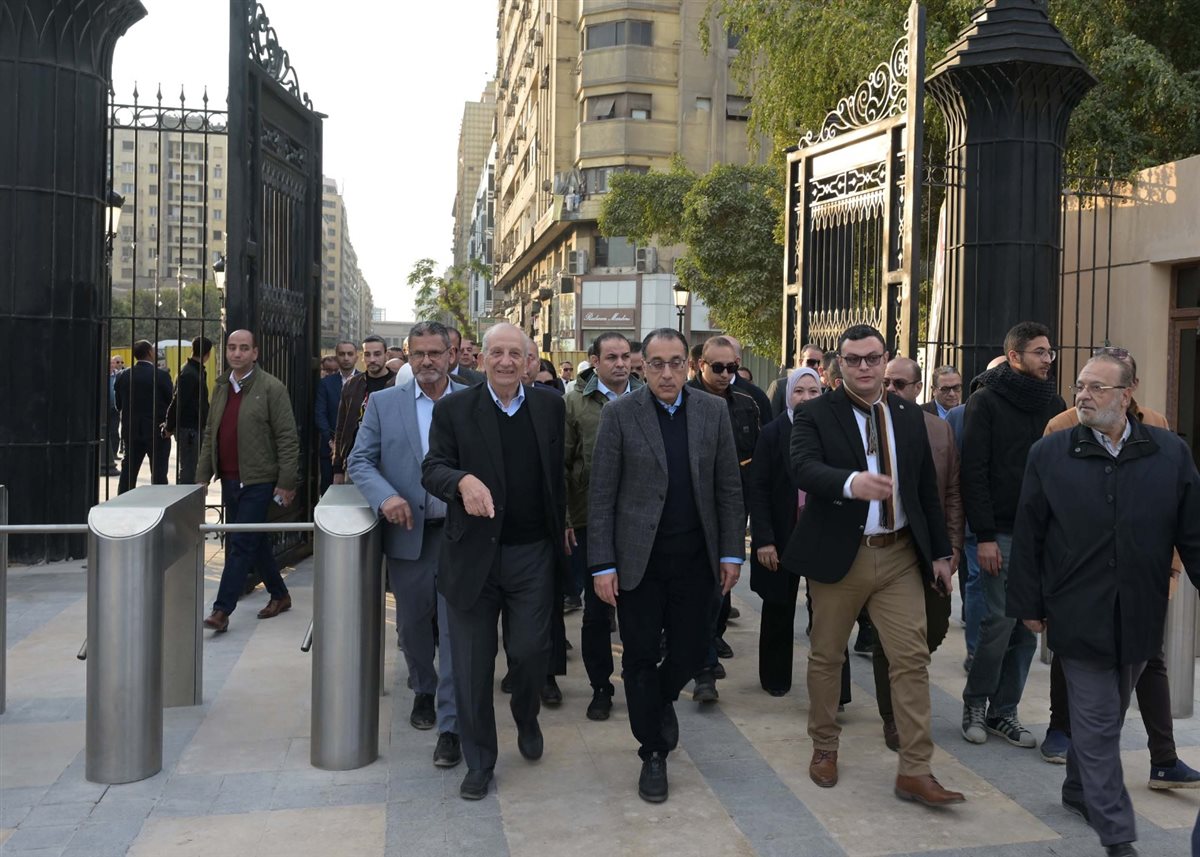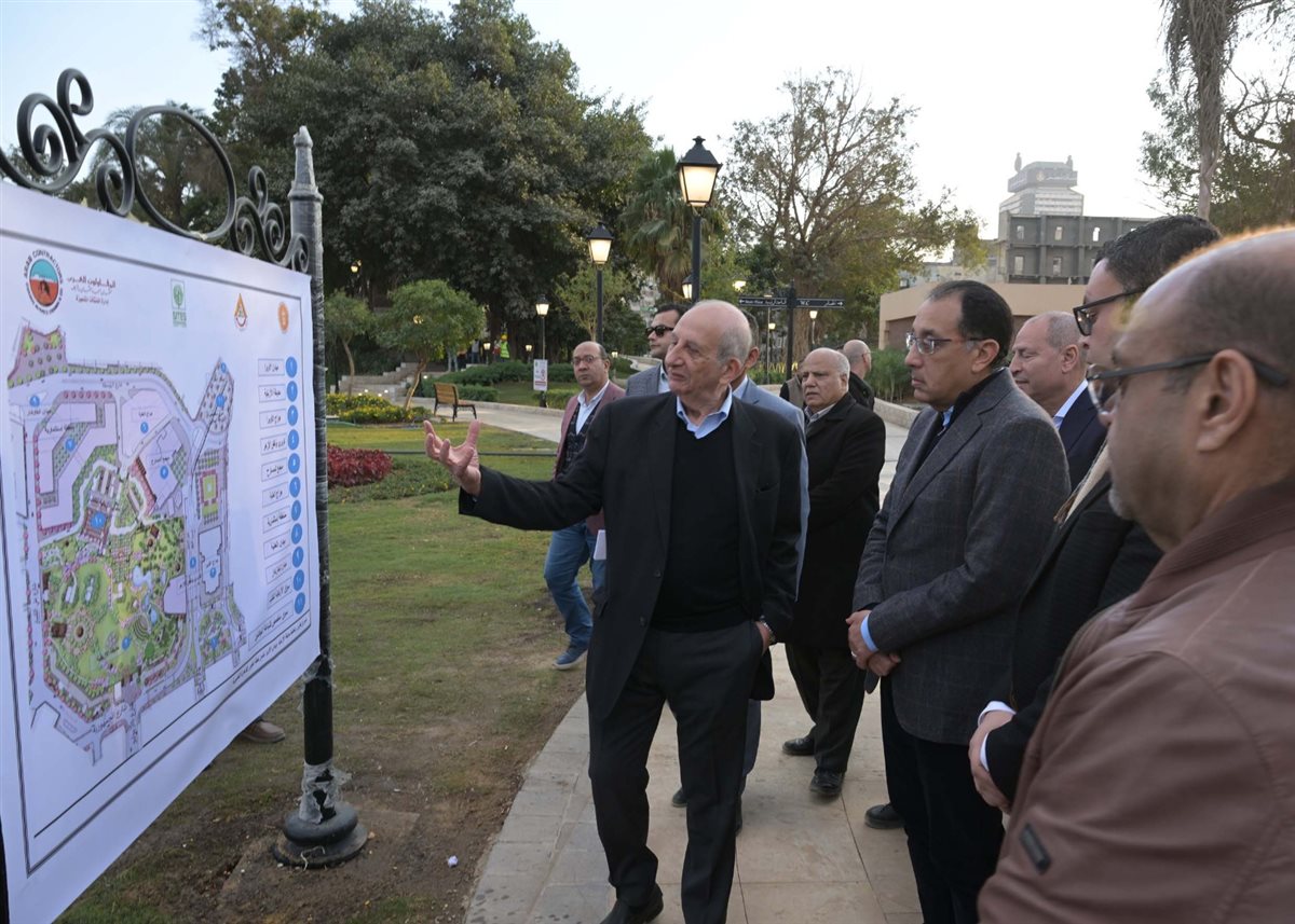 رئيس الوزراء يتفقد مشروع إعادة إحياء حديقة الأزبكية التراثية
