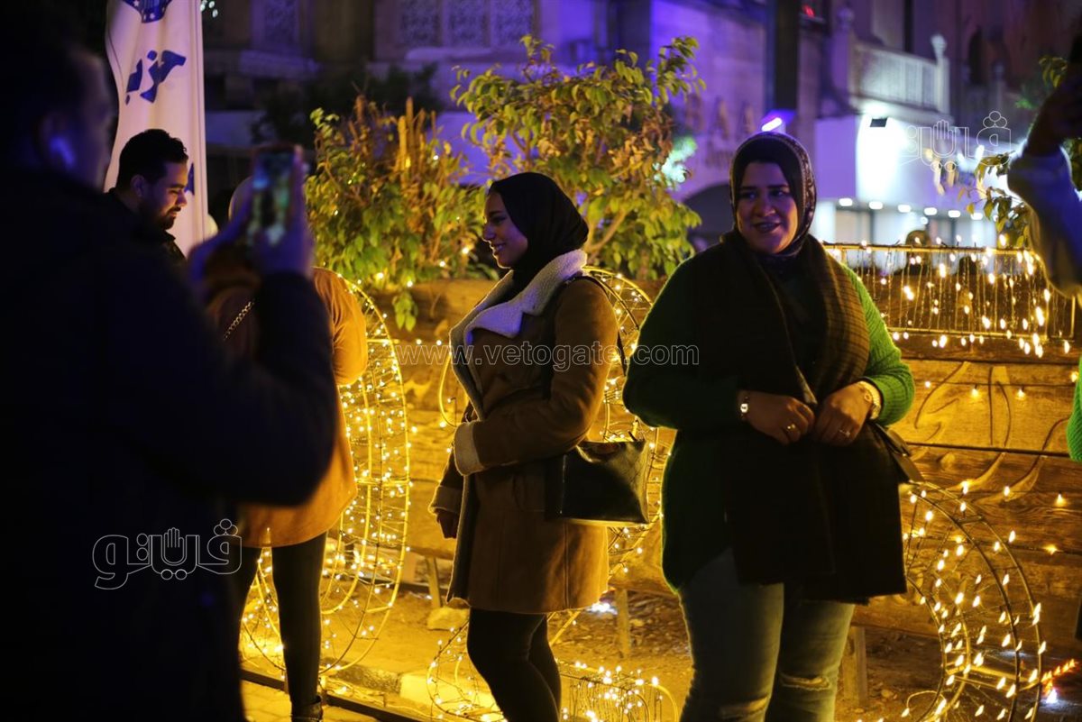 وتجمع العديد من الأسر والأصدقاء في شارع المعز للاحتفال، حيث أقبلوا على التصوير السيلفي إلى جوار زينة الكريسماس، فيما شهدت محلات المطاعم والحلويات إقبالا كبيرا من المواطنين.