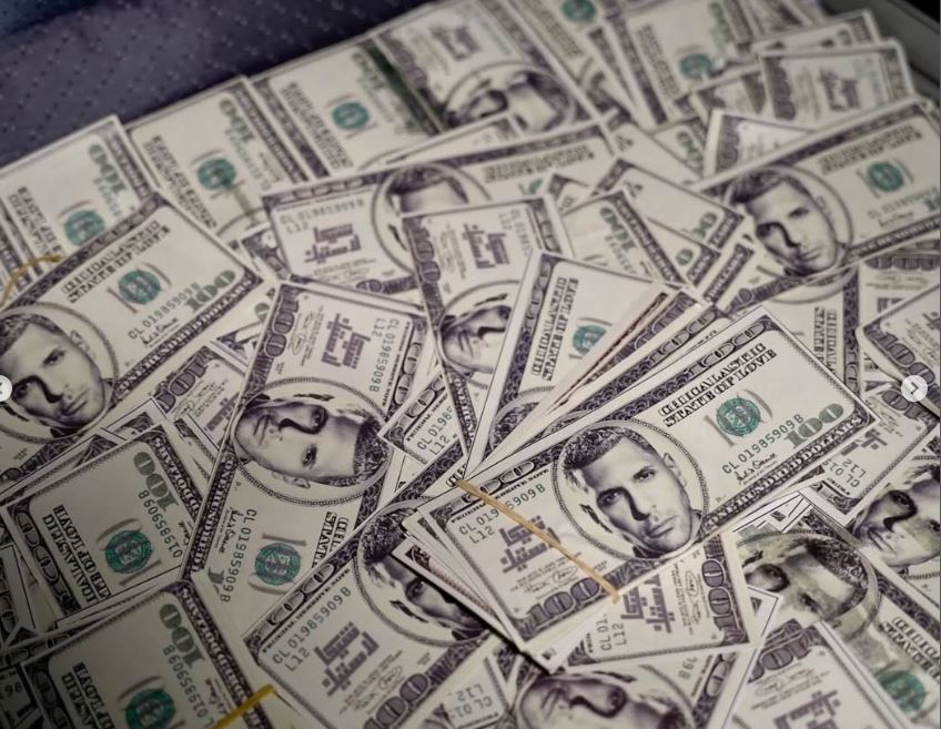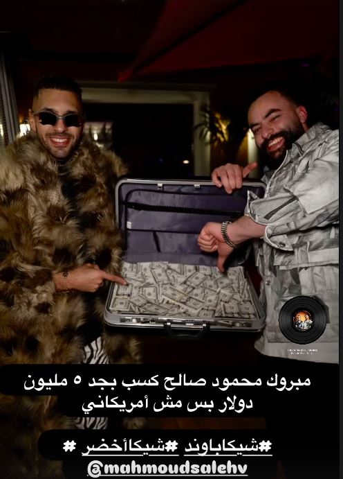 واتضح الأمر أنه نوع من الدعاية لحفله واستغلال التريند، حيث إنه نشر مجموعة صور برفقة شخص خلال حفله ومعهما شنطة مليئة بالدولارات لكنها لم تكن حقيقية بل مطبوع عليه صور “أبو الروس”.