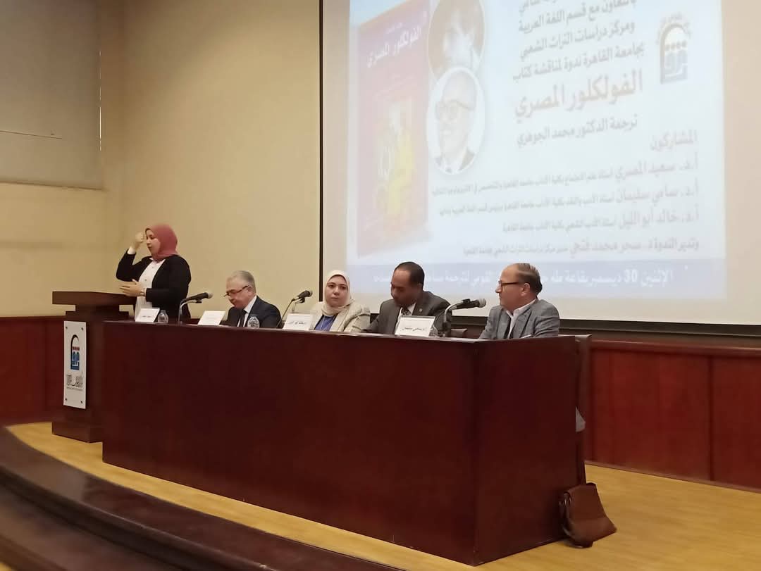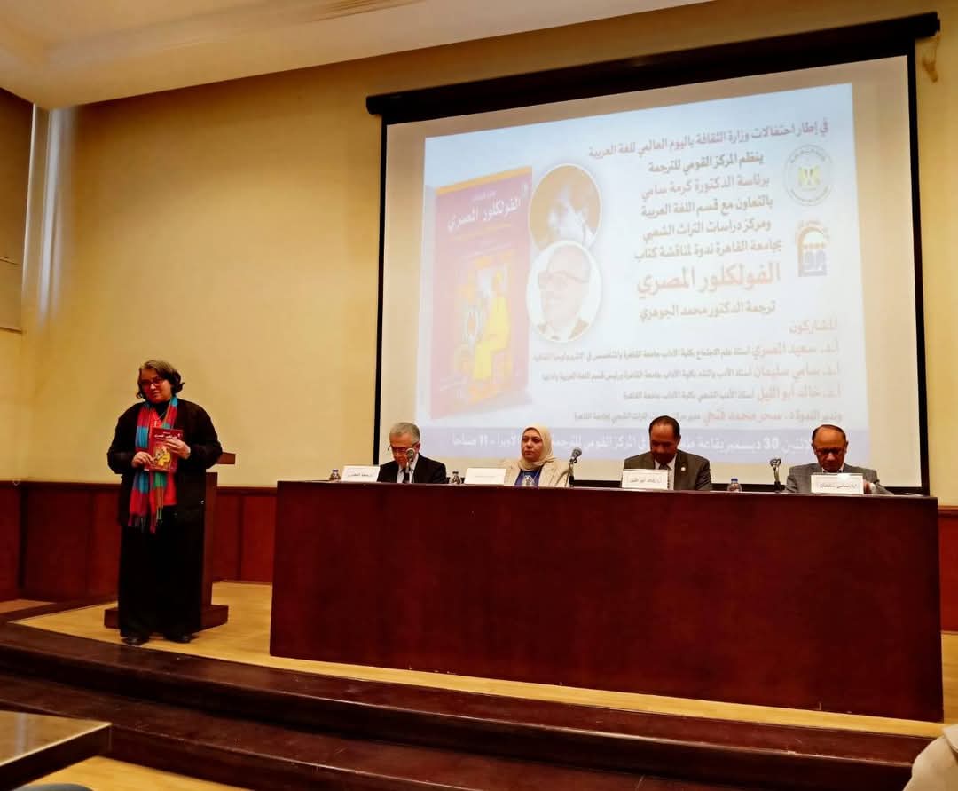 شهدت قاعة طه حسين بالمركز القومي للترجمة برئاسة الدكتورة كرمة سامي إحتفالية وندوة لمناقشة كتاب "الفولكلور المصري"، وذلك في إطار احتفالات وزارة الثقافة بيوم اللغة العربية، وبالتعاون مع قسم اللغة العربية ومركز دراسات التراث الشعبي بجامعة القاهرة.