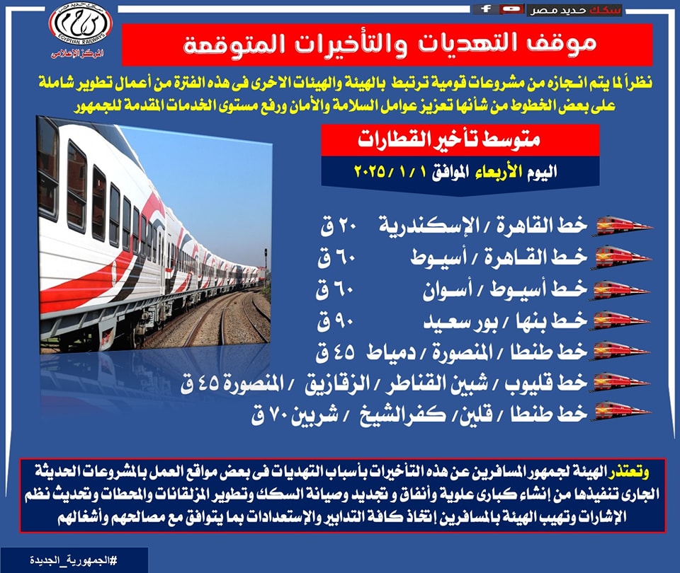 ارتفاع تأخيرات القطارات على معظم الخطوط أول أيام 2025