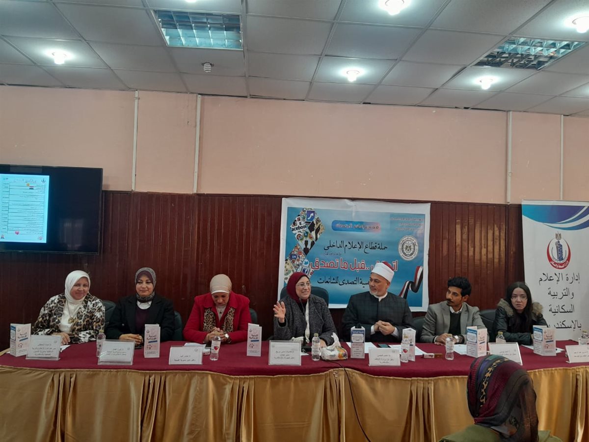 جاء ذلك بحضور الدكتور عاصم قبيصي وكيل أول وزارة الاوقاف بالإسكندرية، والدكتورة حنان أنور وكيل مدير مديرية الصحة، والدكتورة نورا عسل منسق برنامج التربية الإيجابية بوزارة الصحة والسكان، وأحمد بيومي ممثل عن منظمة اليونيسيف، والدكتورة لمياء المعيطي مدير إدارة الإعلام والتربية السكانية بمديرية الشئون الصحية.