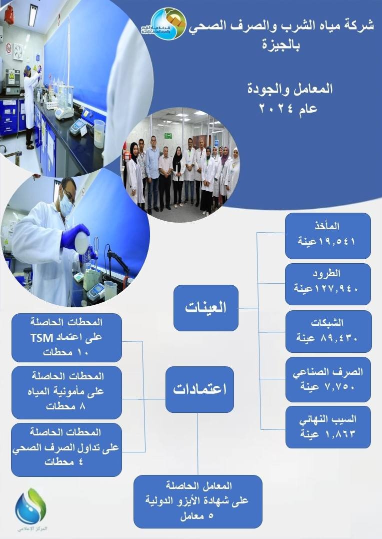 "مياه الجيزة": تحليل 246 ألف عينة واستقبال 237 ألف شكوى خلال 2024 (انفوجراف)