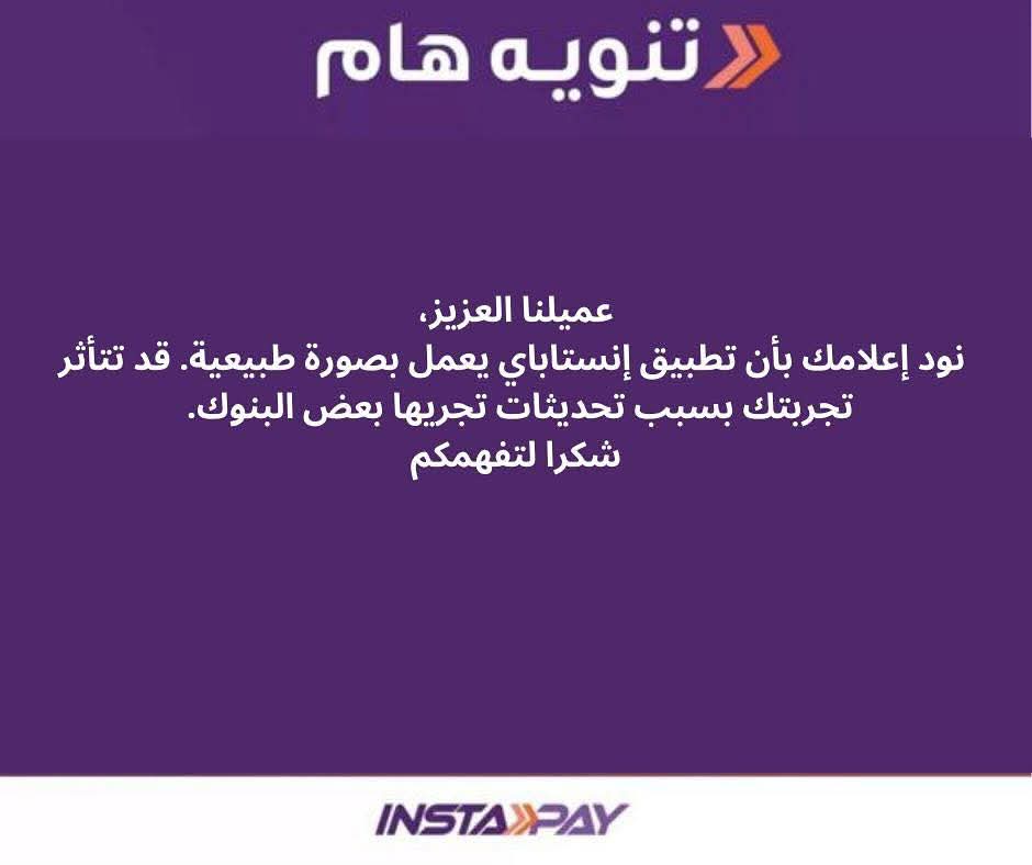 أعلنت منذ قليل الصفحة الرسمية لتطبيقإنستاباي عن عودة الخدمة بصورة طبيعية.
